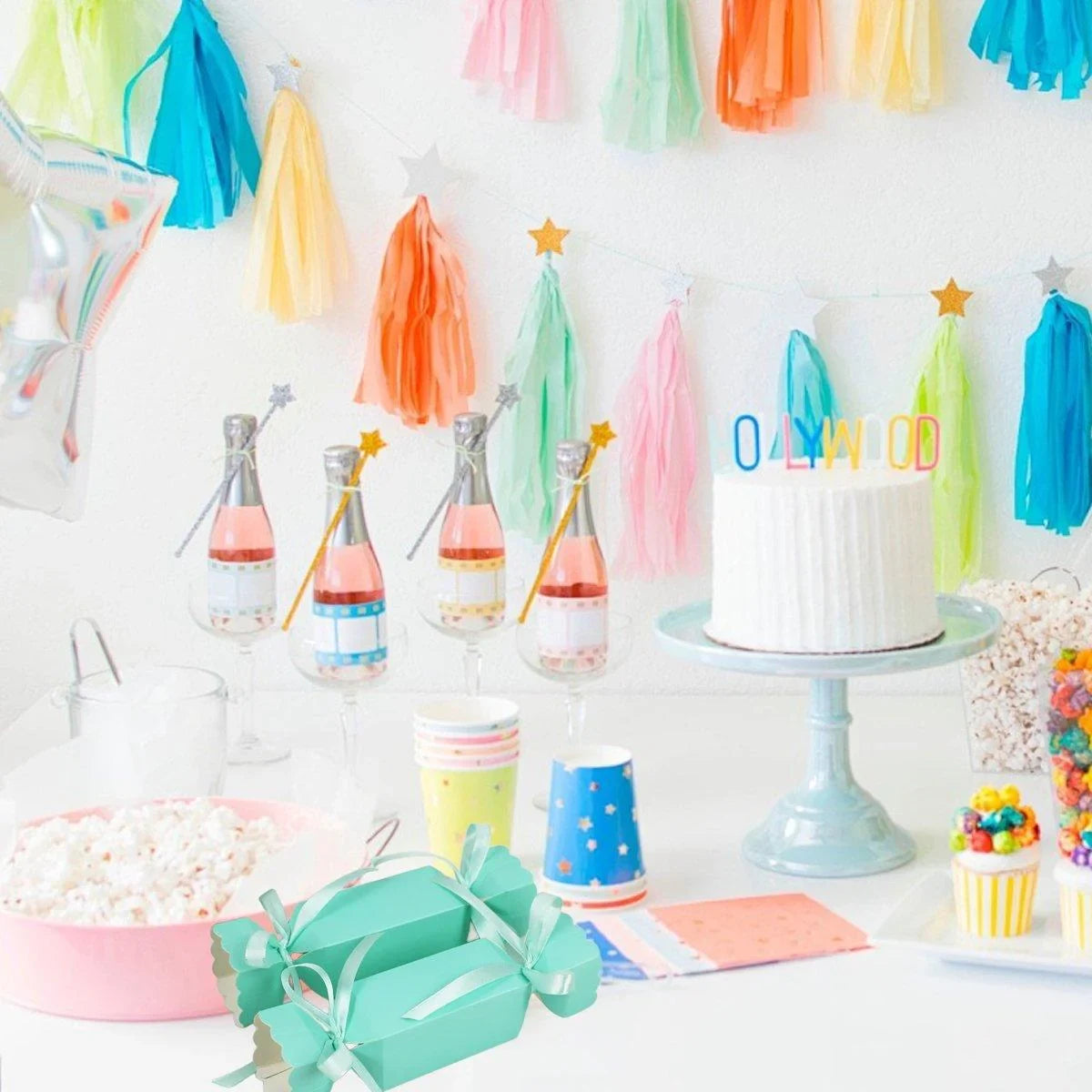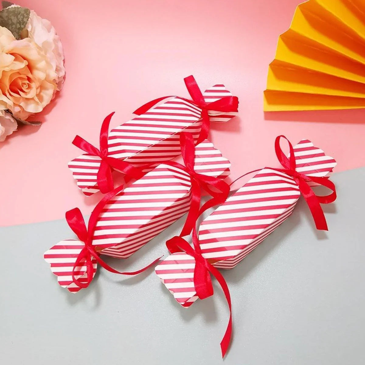 Candy Shaped Gift Box made from high-quality paper, perfect for presenting candies and small gifts. This set includes 50PCS of gift boxes and 100PCS of ribbons, available in red, white, pink, and blue. These candy shaped gift boxes are ideal for special occasions, adding a festive touch to any event.
