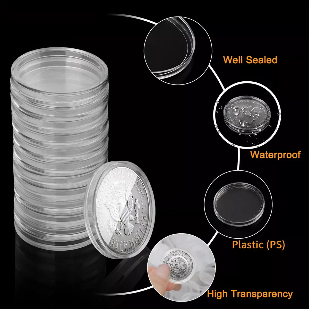 This set of 100 high-quality coin storage boxes is perfect for safeguarding your precious coin collection. Made of durable and transparent plastic (PS), these coin boxes offer excellent protection against dust, moisture, and scratches. The well-sealed design ensures that your coins stay secure, while the clear material allows you to easily display and admire your collection. Suitable for coins, commemorative coins, stamps, and small collectibles.