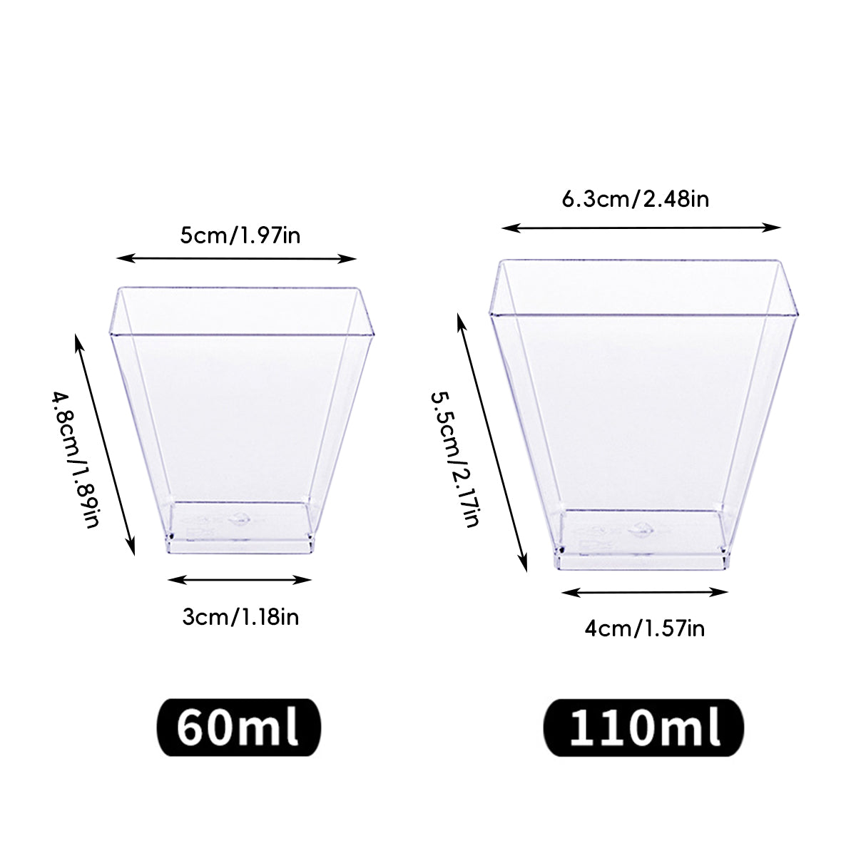100PCS Clear Mousse Dessert Cups 60ml 110ml Square Plastic Cups