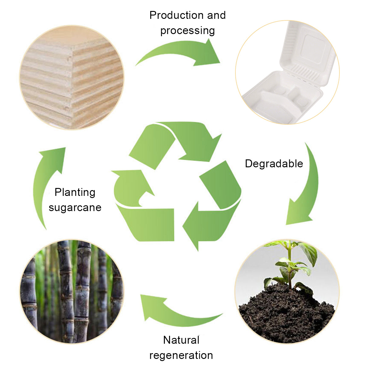 Biodegradable: Made from sugarcane pulp, these lunch boxes are eco-friendly and can naturally decompose.