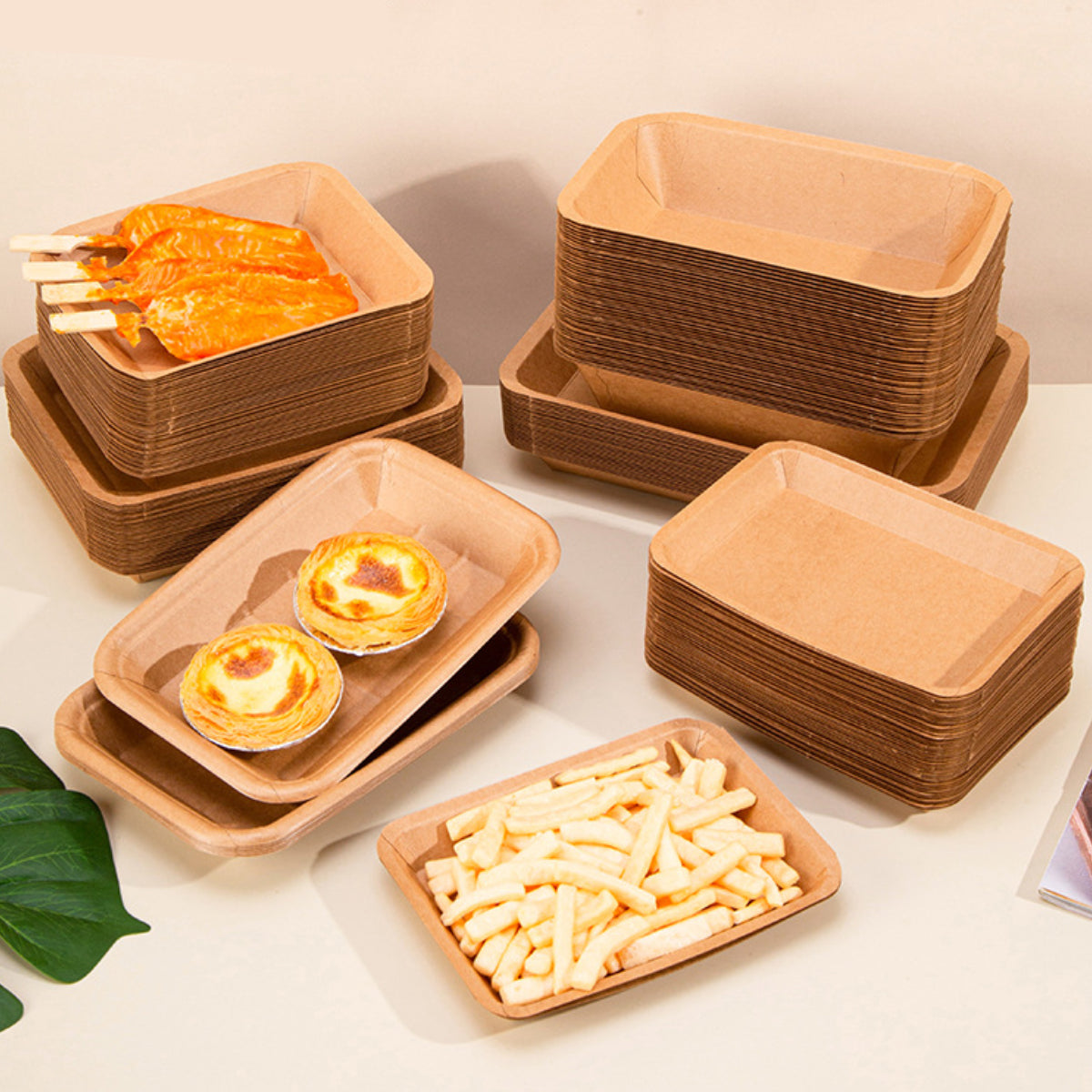 100PCS Kraft Paper Plates Food Grade Water Oil Resistant Lunch Boxes