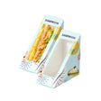These sandwich packaging boxes with a triangular window design are perfect for showcasing your delicious sandwiches. Each box is made of high-quality cardboard, sturdy and durable, featuring a clear window that allows customers to see the contents clearly. These packaging boxes are ideal for restaurants, cafes, takeout, and outdoor events like picnics and parties. They are easy to use and environmentally friendly, helping to keep your food fresh and hygienic.