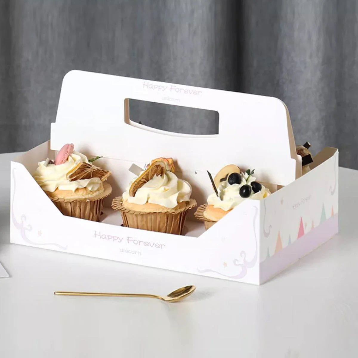 Ensure proper assembly of the boxes before placing cupcakes to prevent damage. These boxes are not suitable for hot foods or liquids. Slight variations in colour may occur due to different lighting and monitor settings.