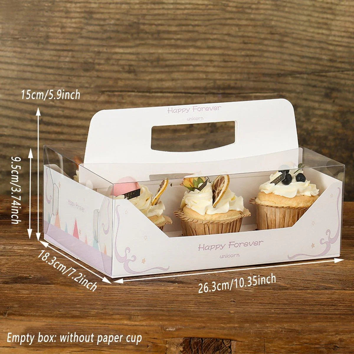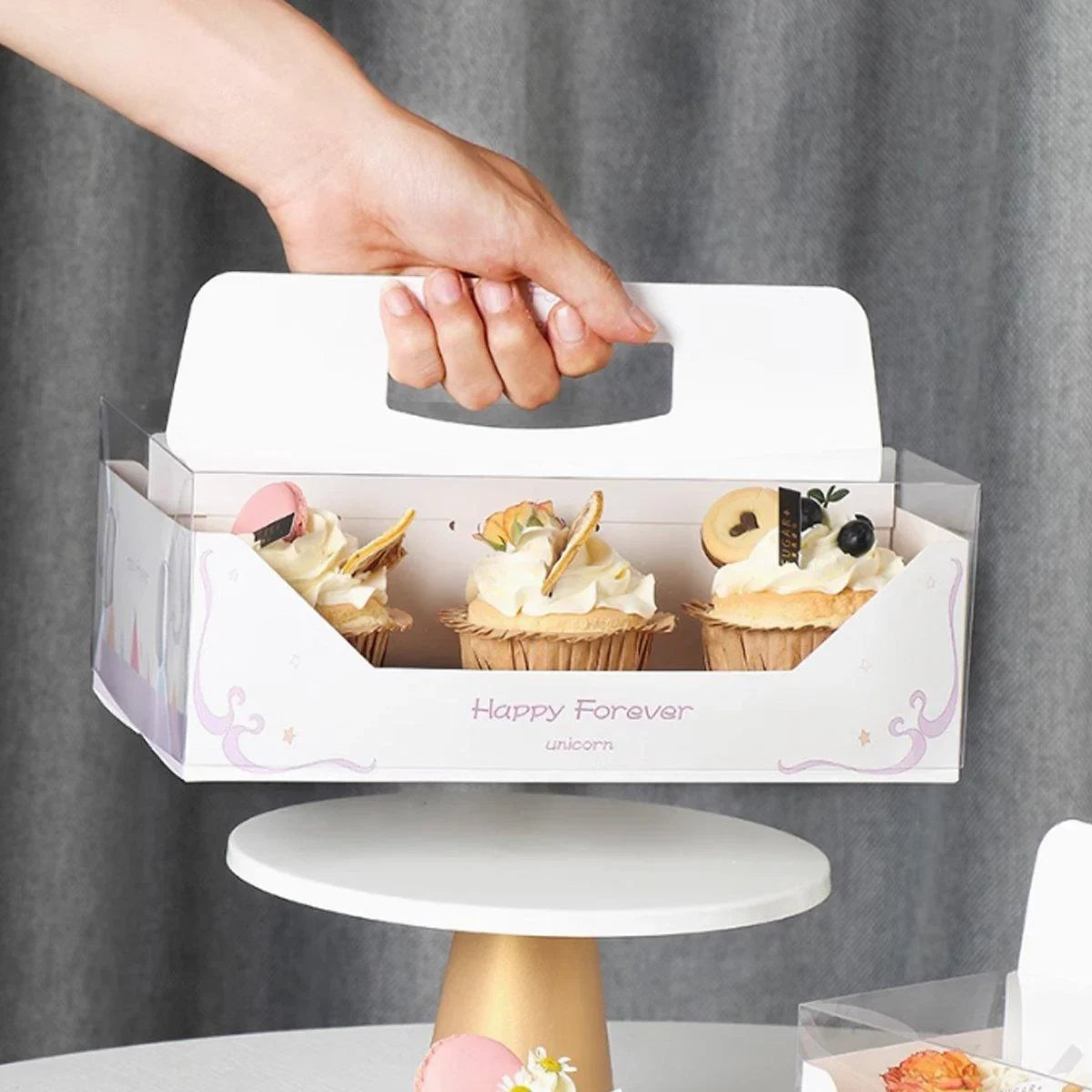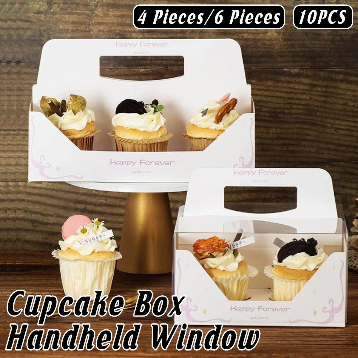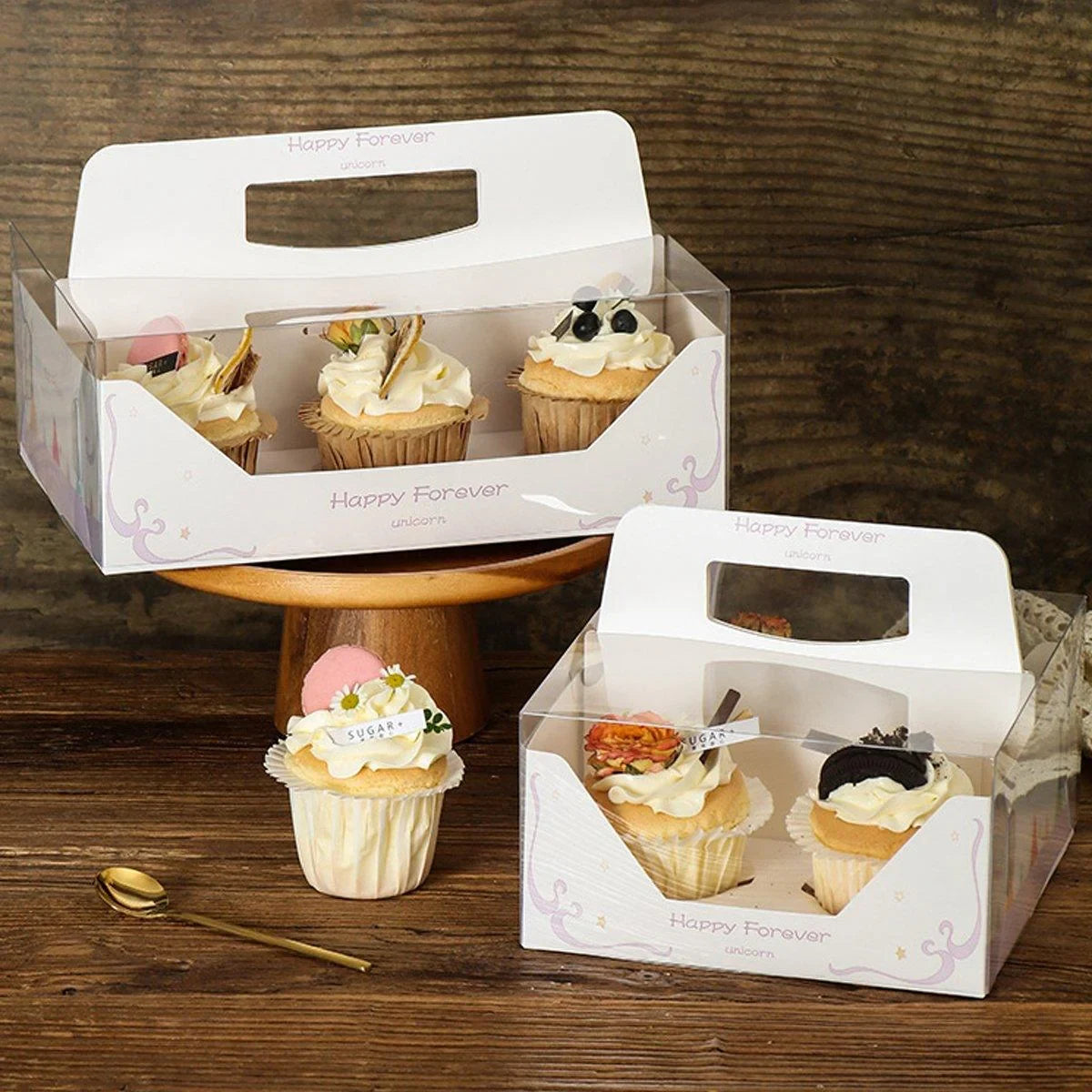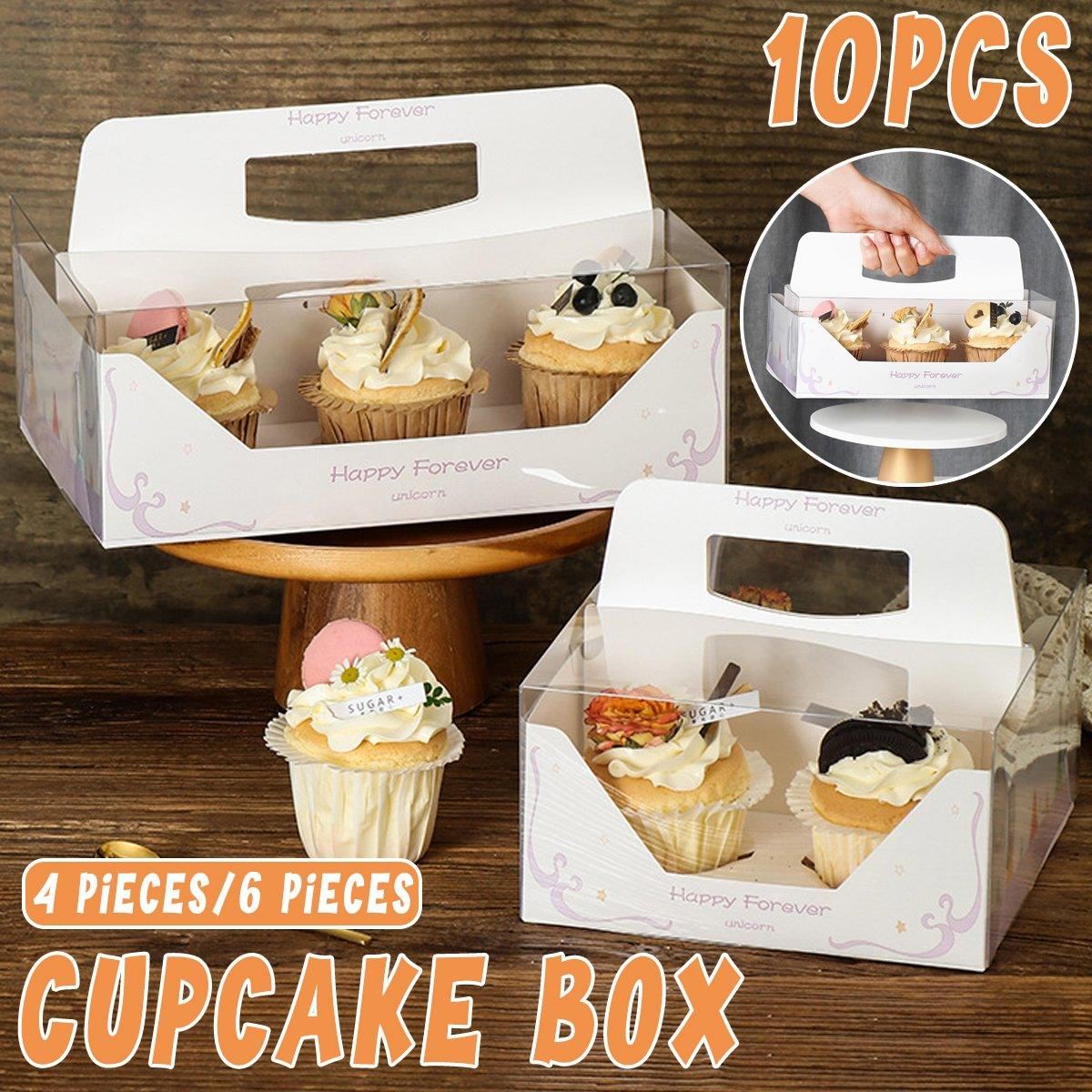 - 10 x Clear Cupcake Boxes with Handles (4-cup or 6-cup capacity)