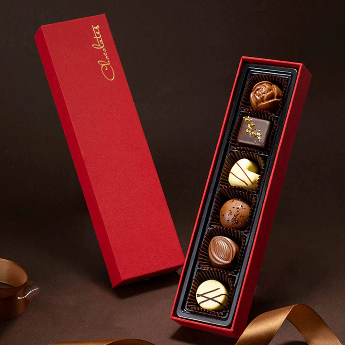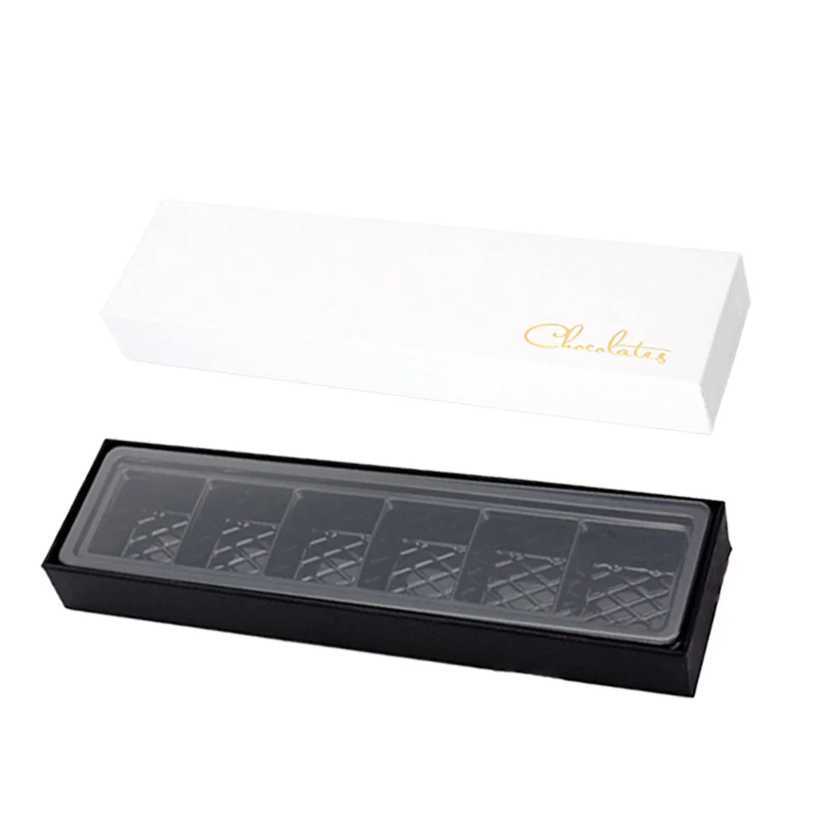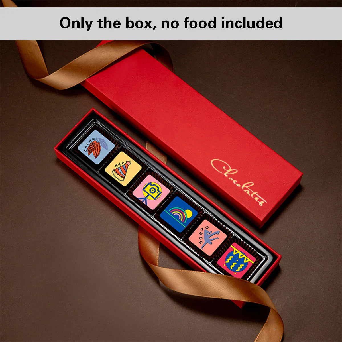 These elegant rectangular chocolate boxes are ideal for presenting handmade chocolates or truffles. Made from durable cardboard with a stylish textured surface, they feature an internal plastic tray to securely hold each piece. Perfect for parties, weddings, and festive gifting.