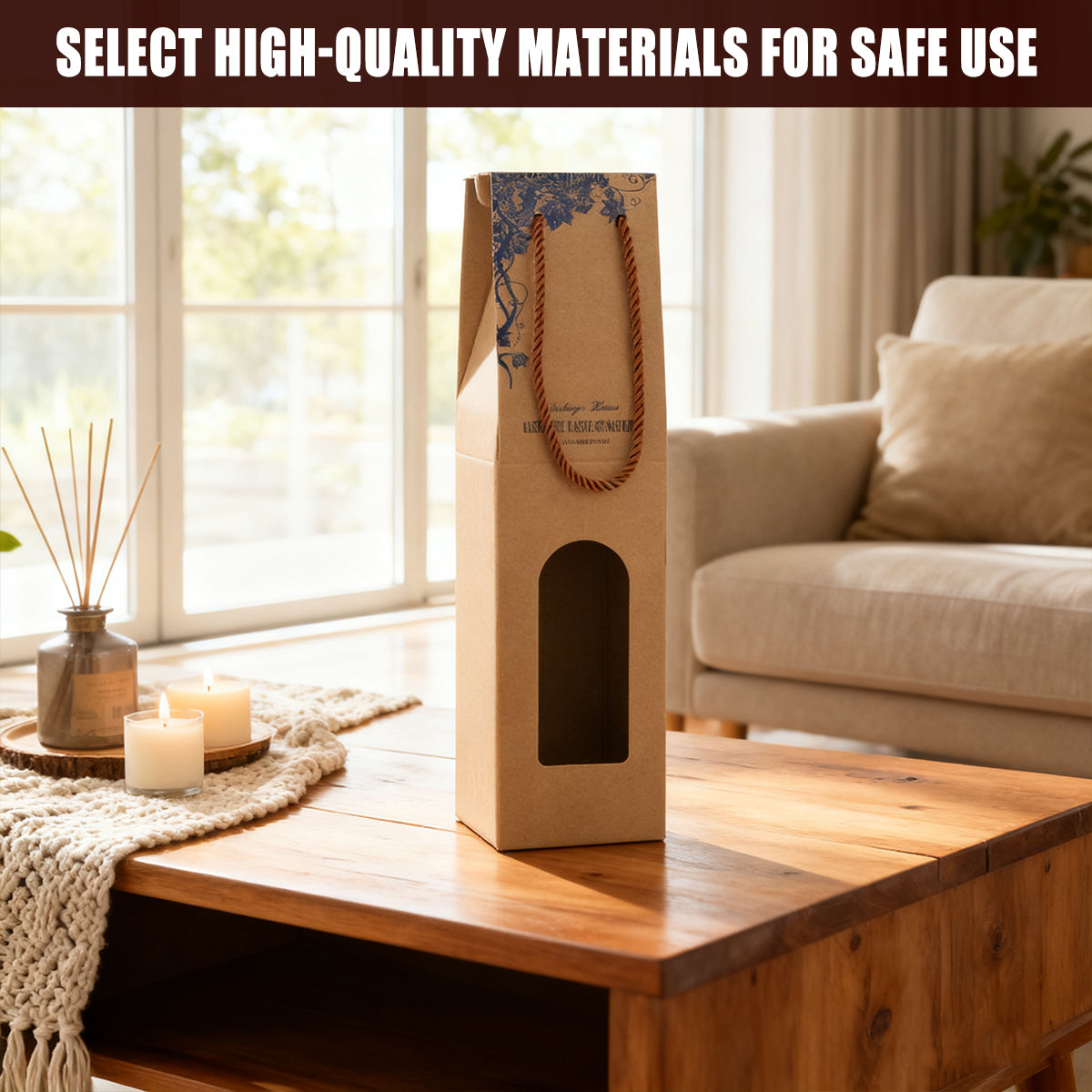 Colour may vary slightly due to lighting and monitor settings. Please allow 1–3 cm size tolerance due to manual measurement. Designed for gift packaging and wine transport. Store in a cool, dry place. Keep away from direct moisture.