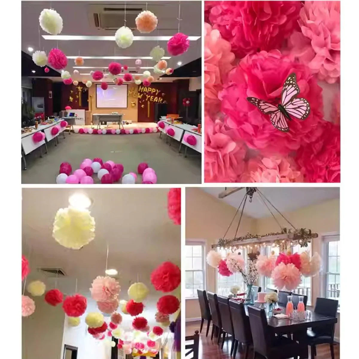 - Stylish Design: Features a mix of spiral ornaments and paper flower balls for a chic look.