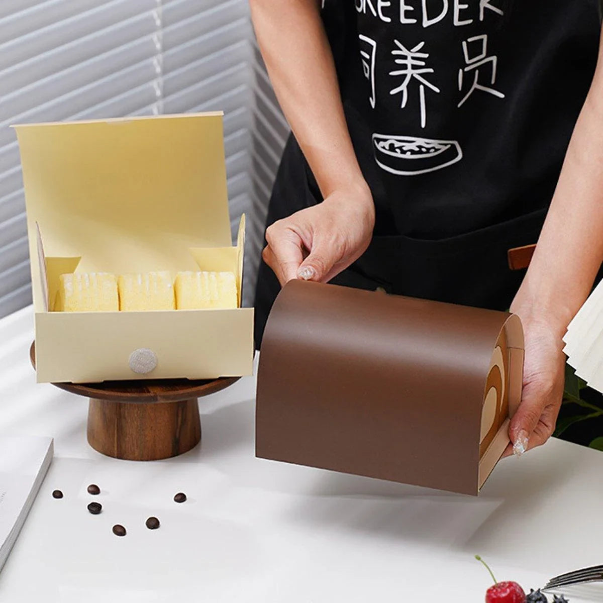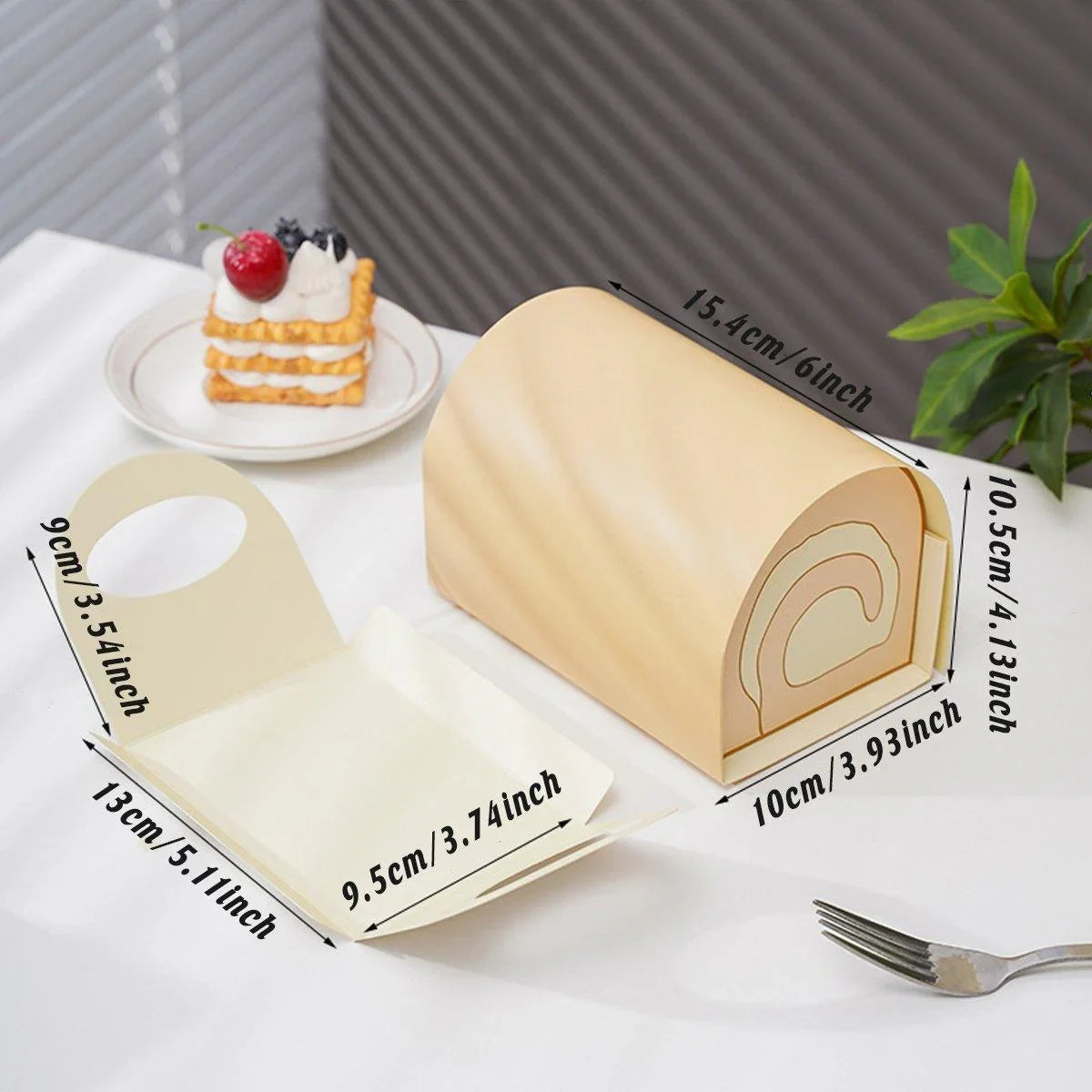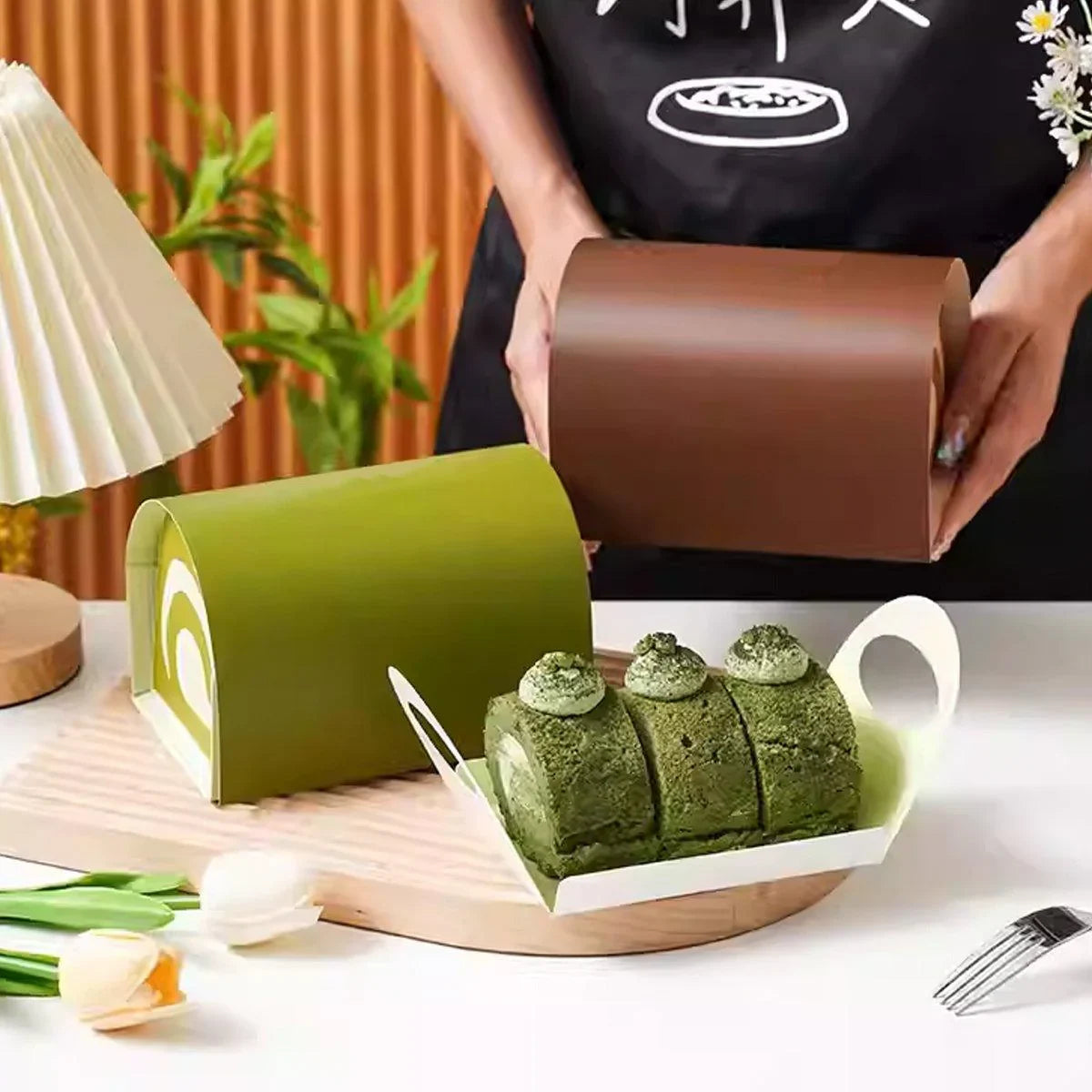 Present your delicious baked goods in style with our set of 20 Baking Boxes, specially designed for cake rolls, Swiss rolls, mousse pastries, and towel rolls. Crafted from high-quality food-grade cardboard, these elegant and practical boxes ensure durability and a professional appearance. The unique curved top design adds sophistication and allows for easy access to the contents. Available in three colors—brown, green, and beige—these boxes are perfect for enhancing any bakery display or special occasion. Ideal for home bakers, bakery shops, parties, weddings, and other events, they keep your creations fresh and beautifully presented.
