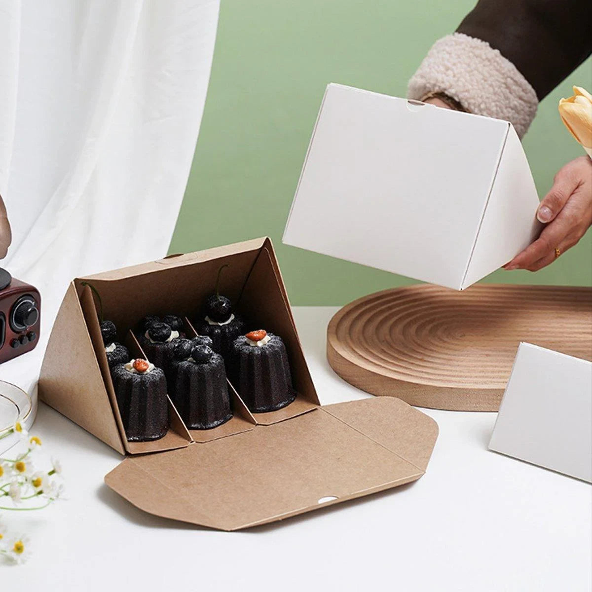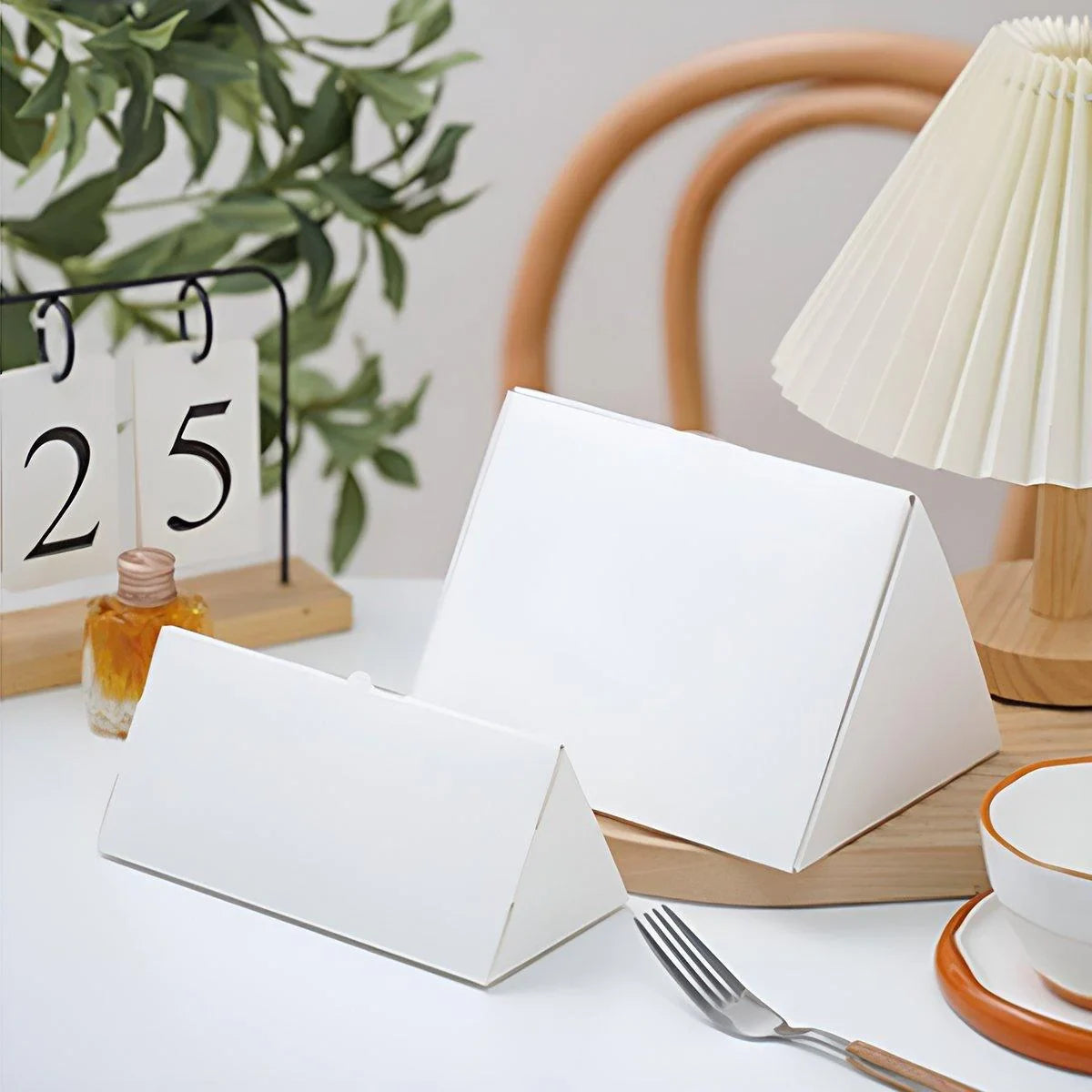 Effortlessly pack and present your delicious treats with this set of 20 Triangle Cake Boxes. Designed for small cakes, sandwiches, or even ball-shaped snacks, these packaging boxes add a touch of simplicity and elegance to your food presentation. Crafted from eco-friendly materials, they provide a sturdy and reliable container that keeps your food secure and fresh. Perfect for bakeries, catering services, or home use, these boxes are both functional and stylish, with a minimalistic design that showcases your treats beautifully.