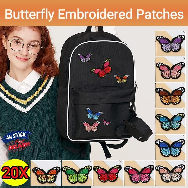 - 20PCS of Butterfly Embroidered Patches (Color random).