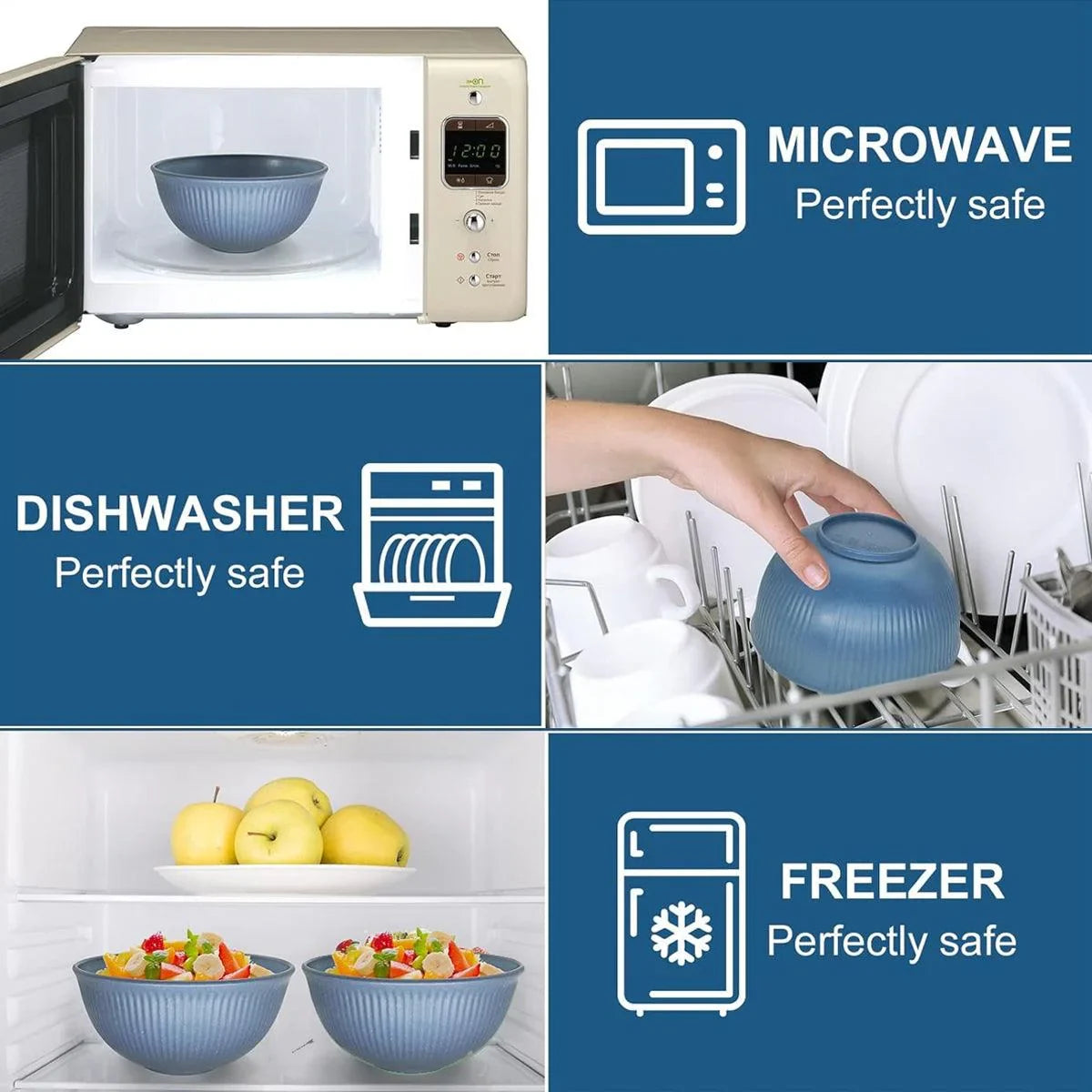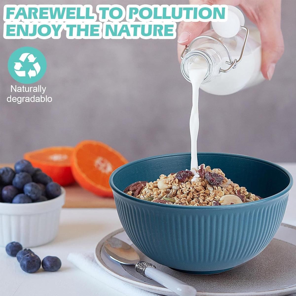 This set of 6 bowls is perfect for serving soup, noodles, rice, or snacks. Made from durable wheat straw, these 26oz bowls are ideal for daily use. The ergonomic design ensures easy handling, while the smooth surface allows for simple cleaning. Microwave-safe and dishwasher-safe, they are designed for maximum convenience, making them a great choice for families and students.
