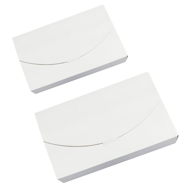 These envelope-style folding boxes provide a clean, elegant, and practical packaging solution for weddings, parties, and small mail items. Made from sturdy 300g white cardboard, they offer reliable protection while maintaining a minimalist appearance. The secure flap closure keeps contents safely enclosed, and the smooth surface is ideal for writing, stamping, or labeling. Lightweight and pre-creased for quick assembly, these boxes are well suited for invitations, favors, and small gifts.
