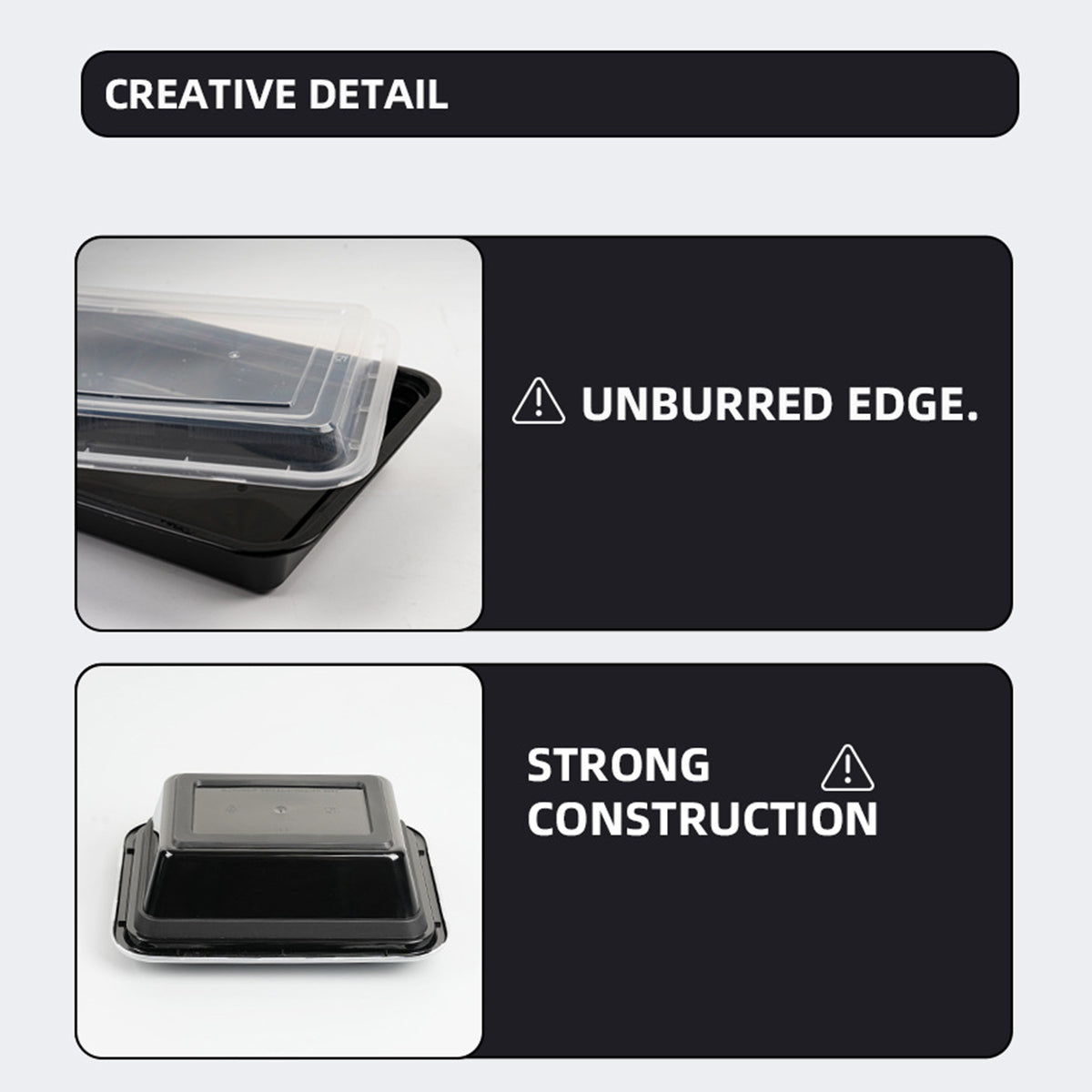 Two designs: 800ml single compartment and 950ml double compartment for organized meal packing