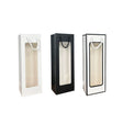 These wine gift bags are designed to provide a refined and practical solution for bottle packaging and gifting. Featuring a rectangular structure with a clear PVC window, they allow wine labels to be displayed without opening the bag. Made from thick cardstock with reinforced construction, each bag securely holds a standard 750ml wine bottle. The drawstring closure and sturdy rope handles ensure safe transport while maintaining an elegant presentation suitable for holidays, birthdays, and special occasions.