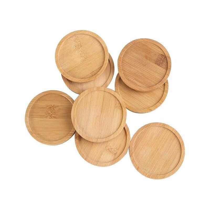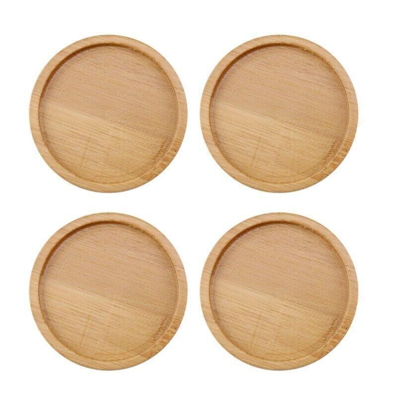 4x Round Bamboo Wooden Coaster Tea Coffee Drink Holders Pallet Beverage Mat Pad