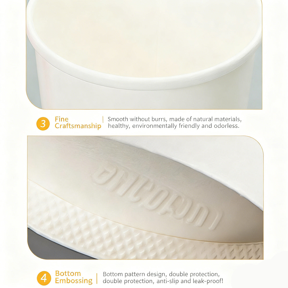 These kraft paper bowls are made from high quality food grade kraft paper and designed for reliable hot and cold food service. Available in 235ml and 350ml capacities, they feature a thick waterproof coating and a built in leak proof layer to safely hold soups, noodles, and liquids without seepage. With strong temperature resistance from freezer to microwave use, a smooth inner surface, and a reinforced embossed base, these bowls are suitable for party catering, takeaway packaging, and everyday food service needs.