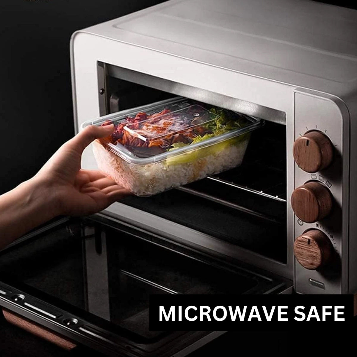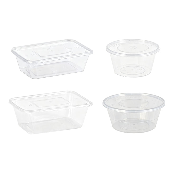 These 50PCS food-grade disposable takeout containers are ideal for restaurants, meal prep, and delivery. Available in square and round shapes with 4 capacities (450–1000ml), they are microwave and refrigerator safe, made of durable PP material. Designed to keep food warm and fresh, they feature a rolled hem for a secure fit and a transparent lid for easy food visibility.