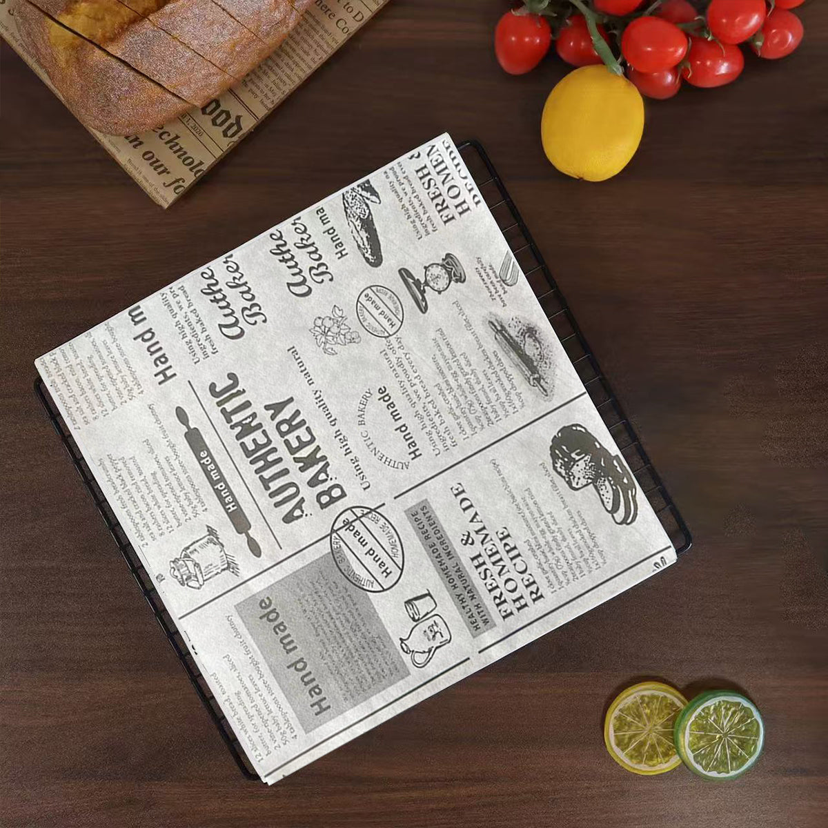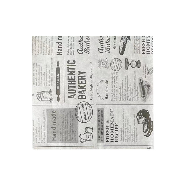 Vintage Design: Features a newspaper-like pattern with “Authentic Bakery” and other prints, adding a stylish touch to food presentation.