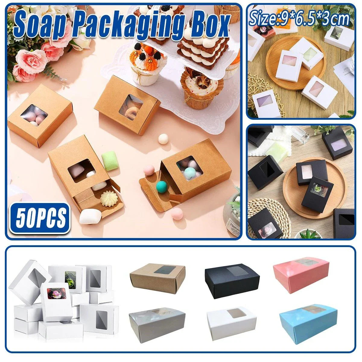 Kraft Paper Soap Box with Window Rectangular 50PCS