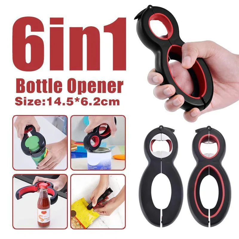 Unlock convenience with our 6 in 1 Multi-Functional Bottle Opener, designed to effortlessly open a wide range of seals and lids. This tool is a kitchen must-have, providing the leverage needed to assist those with limited hand strength, including the elderly and individuals with arthritis.