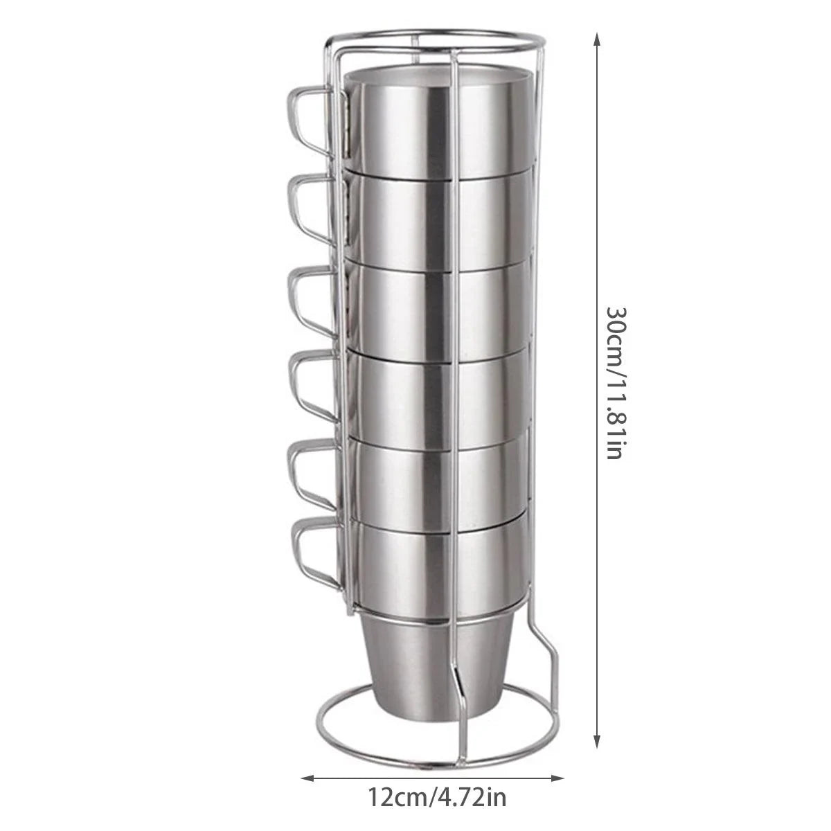 Enjoy your coffee in modern style with this set of six double-wall stainless steel coffee mugs. Designed with a frosted exterior, these mugs feature a 300ml capacity and double-wall insulation to keep your beverages warm while the outer surface remains cool to the touch. Made from high-quality stainless steel, they are durable, rust-resistant, and easy to clean. The set includes a convenient cup holder to save space, making it ideal for home, office, or hotel use.