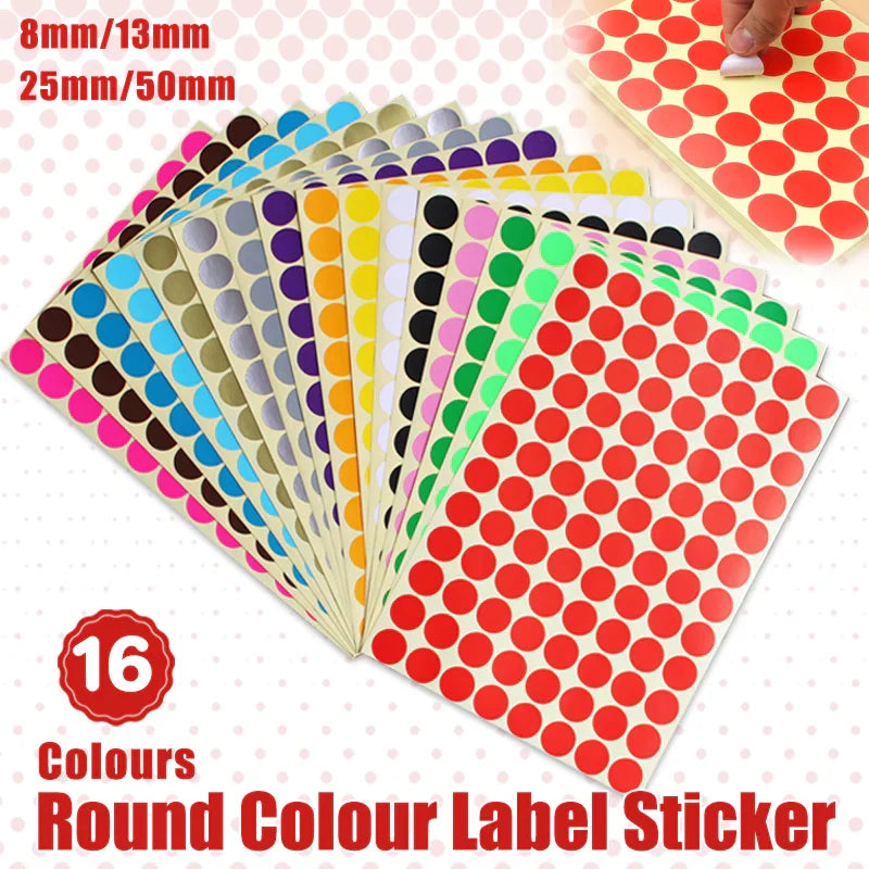 1/5/15 sheets of Colour Sticker Dots Adhesive Round Labels (based on selection)