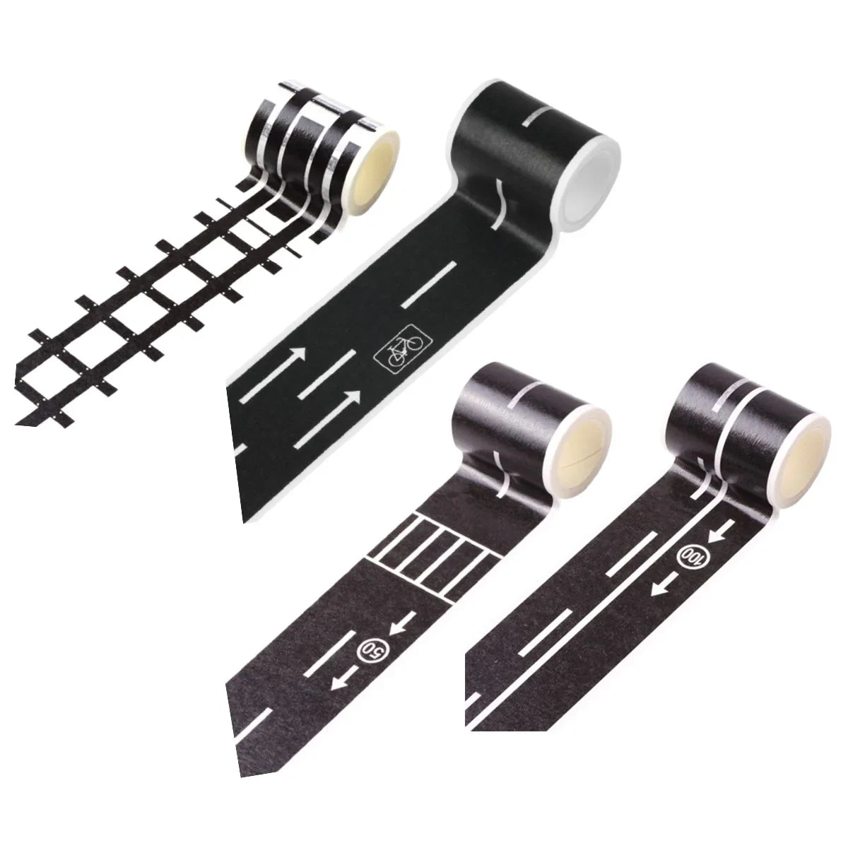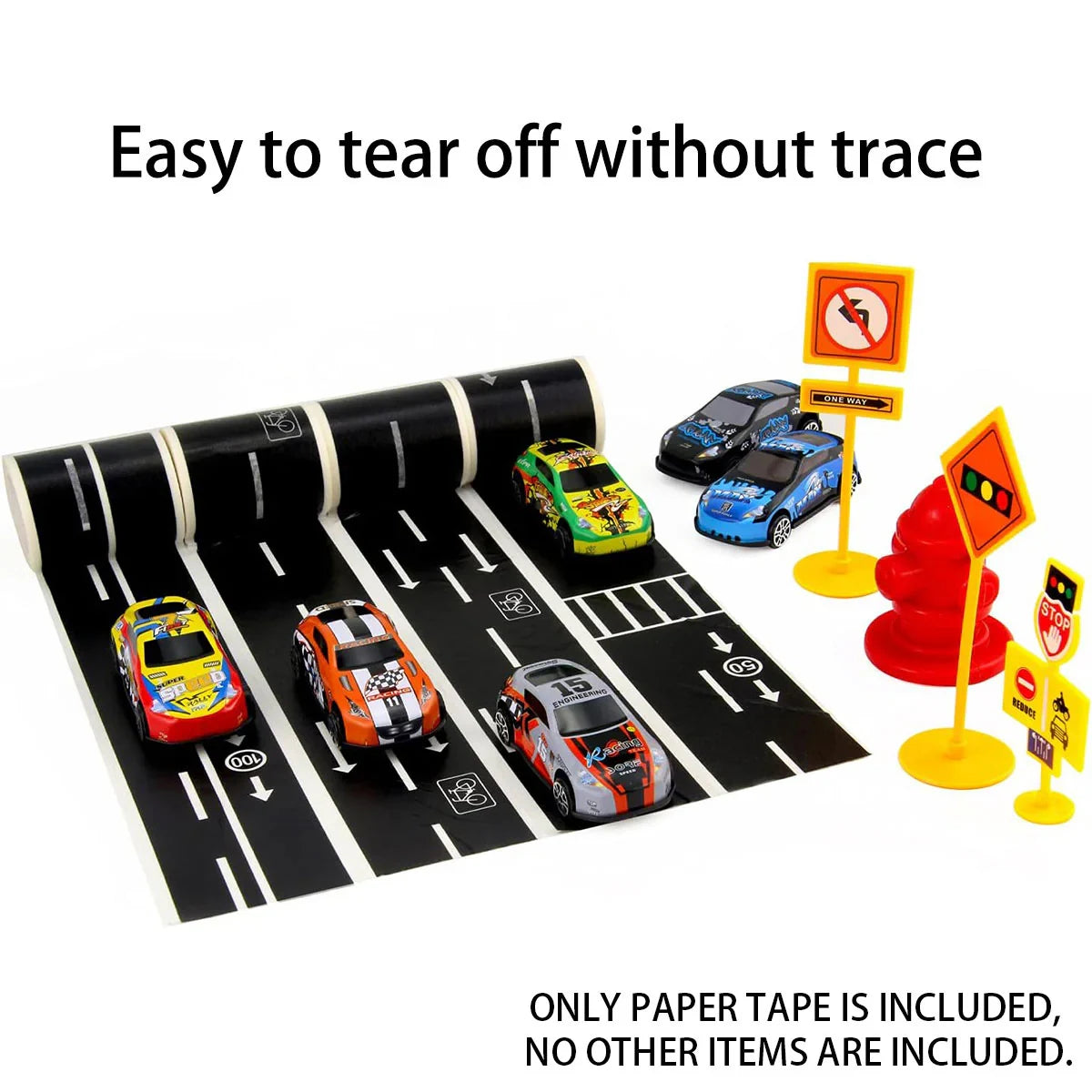 - 4-Piece Set with Multiple Designs: Includes highway tape, railway tape, and speed limit indicators (50 and 100), providing variety for creative road and rail play.