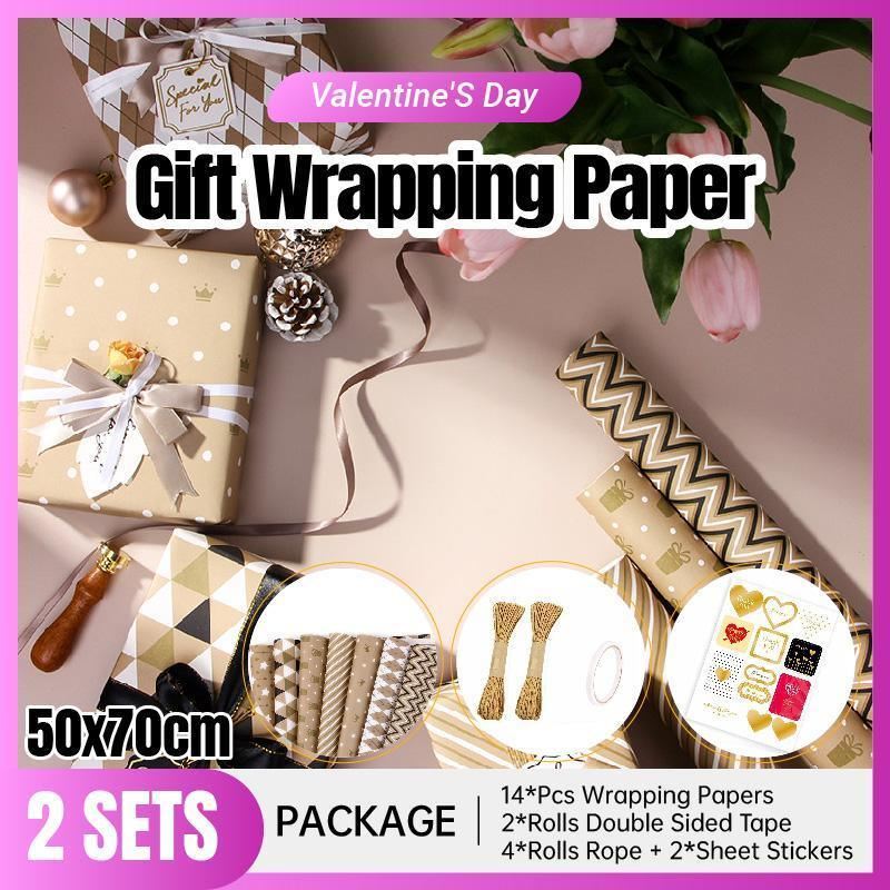 - Quantity: 14 sheets of wrapping paper, 2 sheets of stickers, 4 rolls of rope (10m each), 2 rolls of double-sided tape