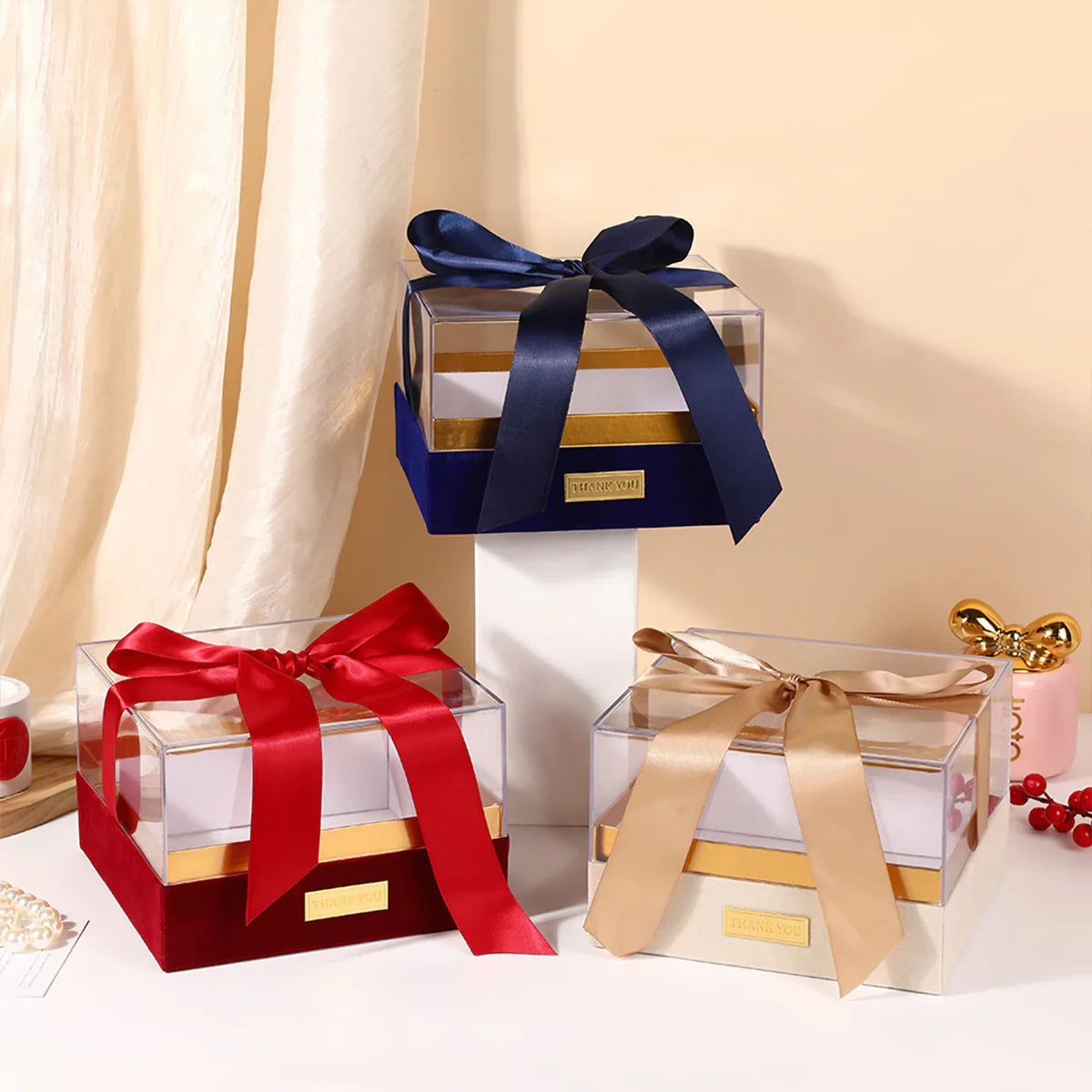 Clear Acrylic Gift Box with Bow for Display Packaging