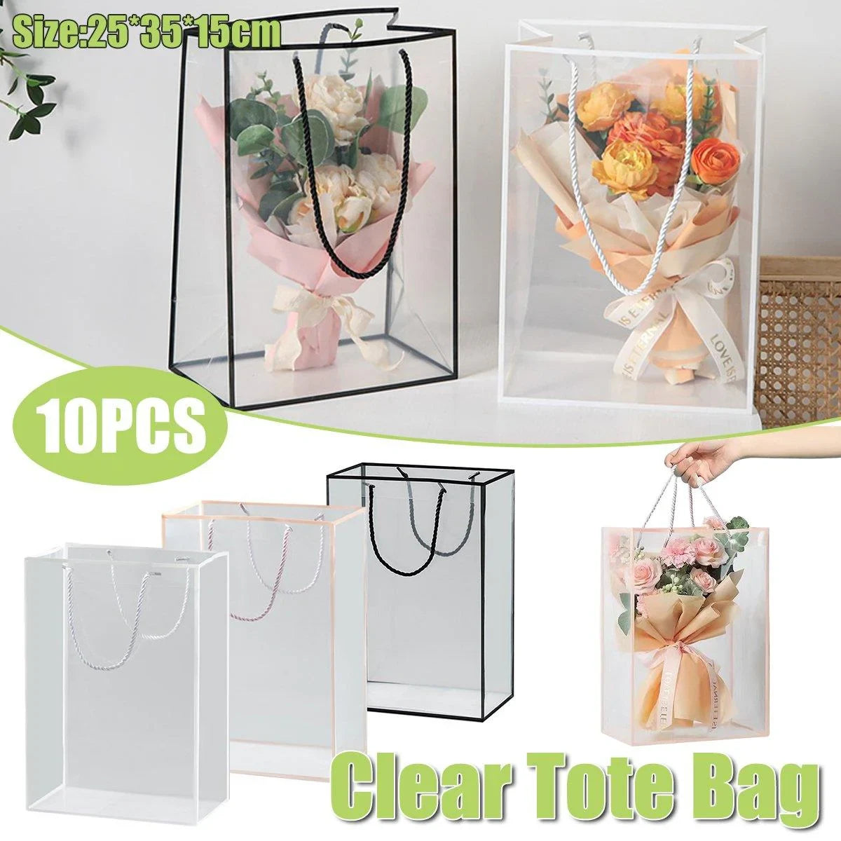 Premium PVC Clear Tote Bags Gift Packaging 10PCS