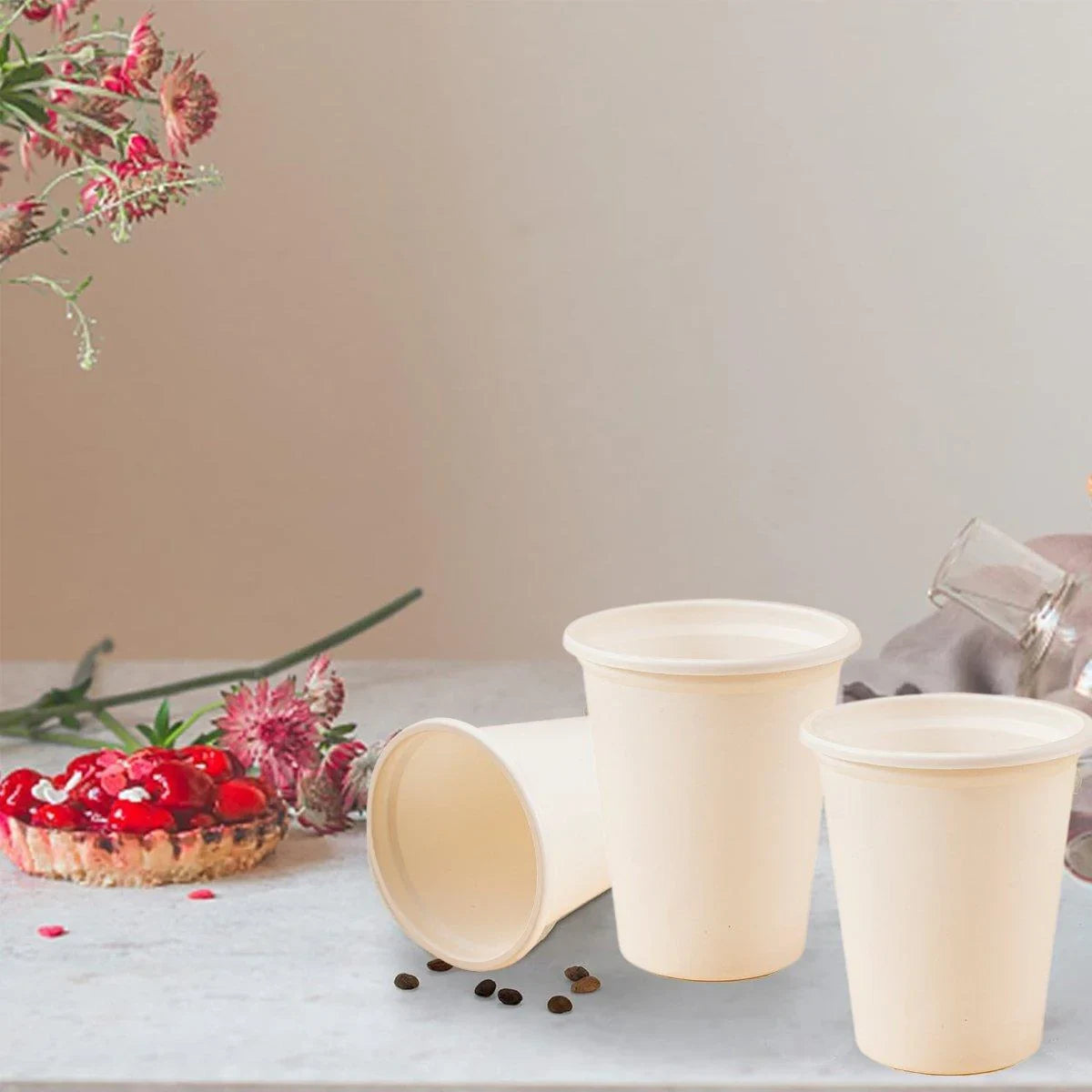 Introducing our Corn Starch Disposable Cups, the perfect eco-friendly solution for your beverage needs. These cups are designed for single-use, making them ideal for parties, picnics, office meetings, and other gatherings. Made from natural, biodegradable corn starch, these cups are not only good for the environment but also safe for use with hot and cold drinks. Enjoy the convenience of disposable cups without the guilt of contributing to plastic waste. These cups are sturdy, leak-proof, and available in a neutral colour to complement any event decor. With their microwave-safe feature, you can easily reheat your drinks without worry.