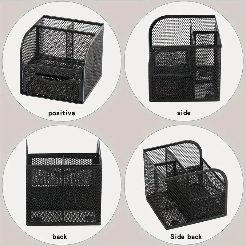 Enhance your workspace with this stylish and functional metal desktop organizer. Featuring a minimalist honeycomb grid design, this organizer is crafted from durable metal, making it both practical and visually appealing. With multiple compartments and a pull-out drawer, it provides ample space for storing pens, sticky notes, paper clips, and other small office essentials. Ideal for home, office, or study areas, this organizer helps maintain a tidy and organized desktop while adding a modern touch to your environment.