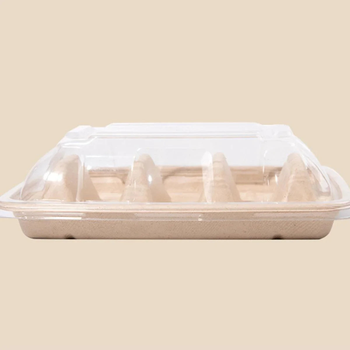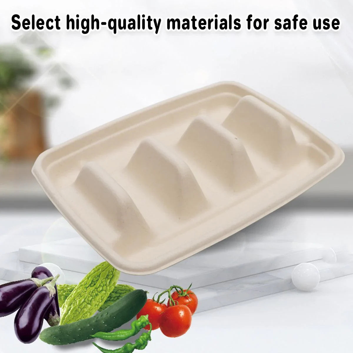 These taco boxes provide a convenient and secure way to store and transport tacos, ensuring they stay fresh and intact. Made from high-quality materials, the tray is sturdy, oil-resistant, and features a secure lid to keep food protected. The individual compartments hold tacos neatly, preventing them from falling apart during transport. Whether for takeout, catering, or meal prep, these boxes offer a practical and professional presentation for tacos and other food items.