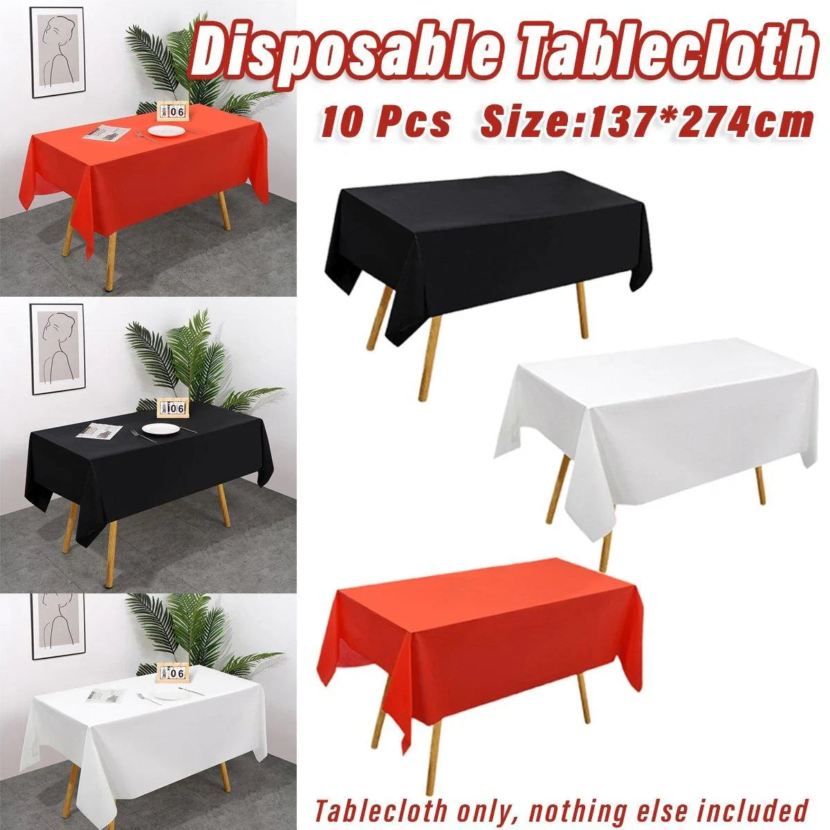 - 10 x Disposable PEVA Rectangular Tablecloths