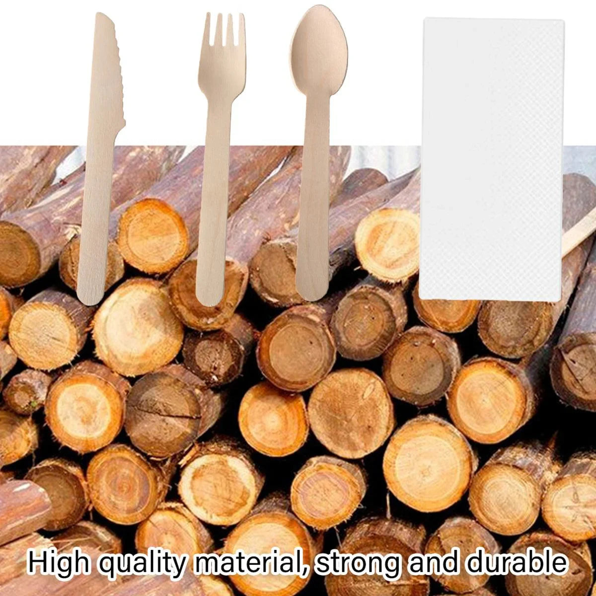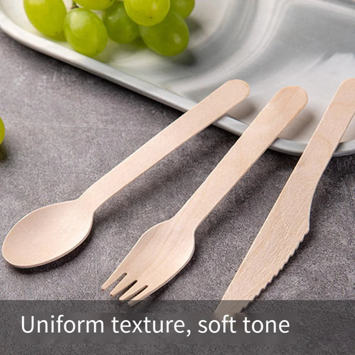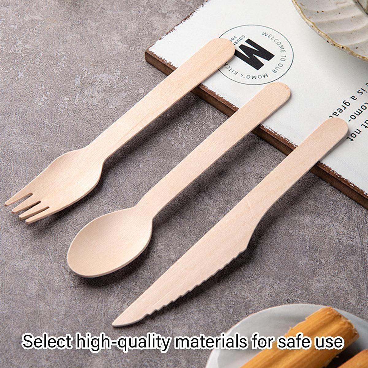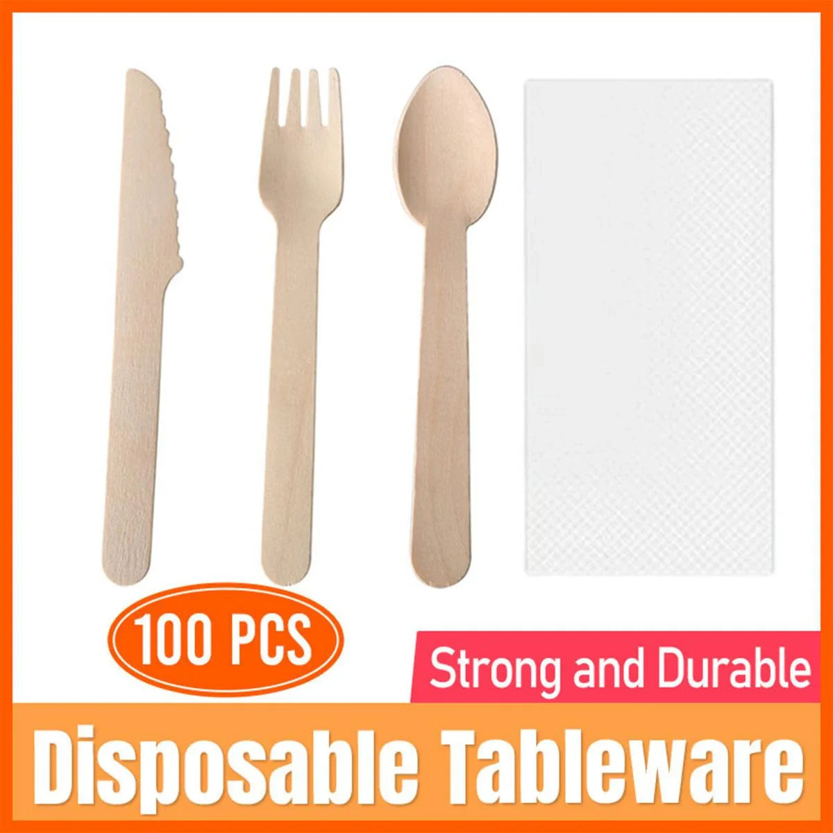 Disposable Tableware Set Wooden Spoons Forks Knives 100Sets