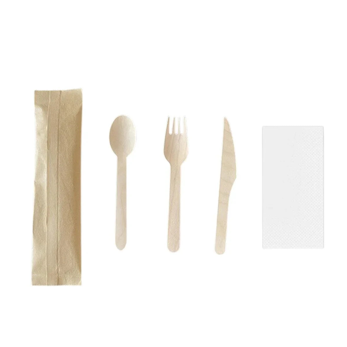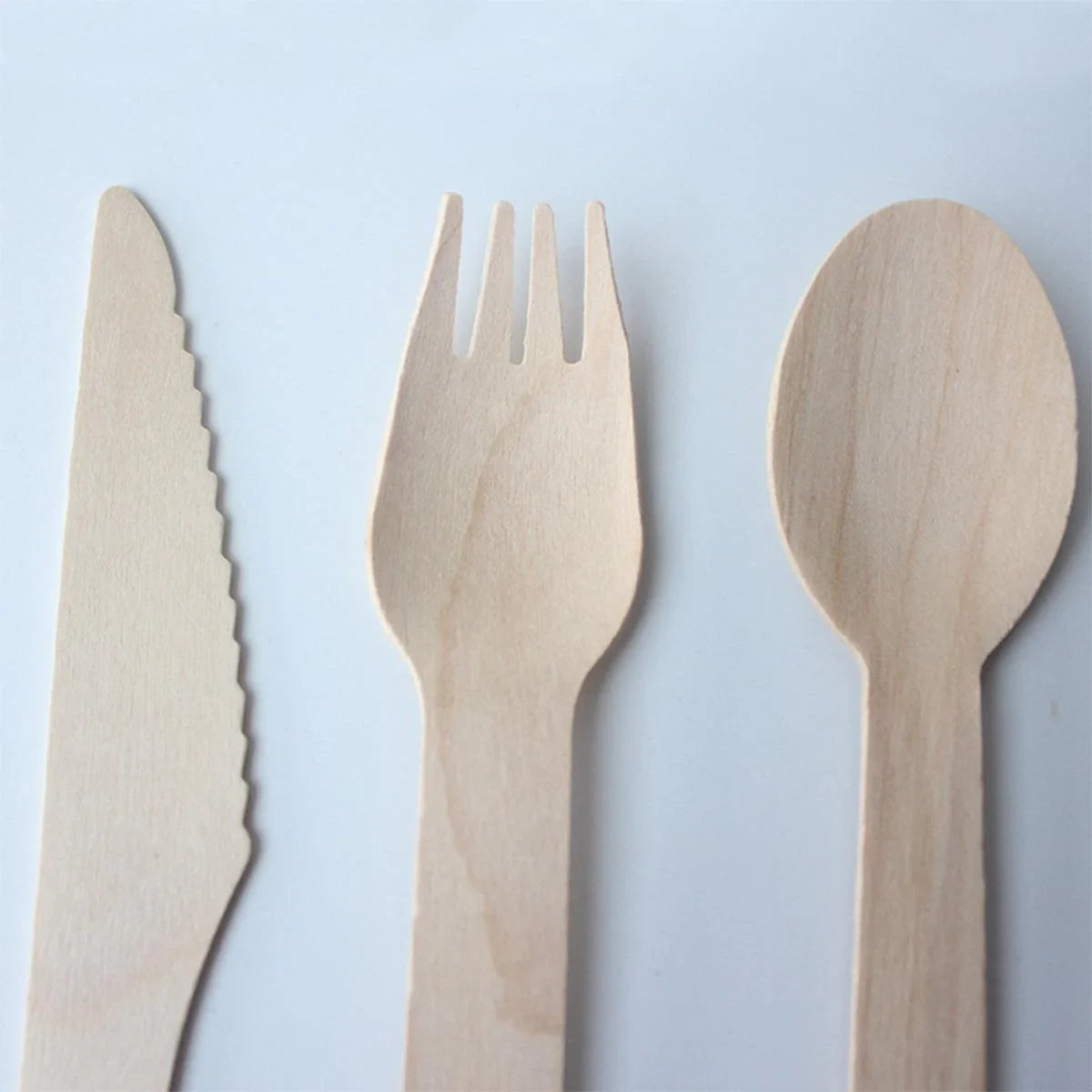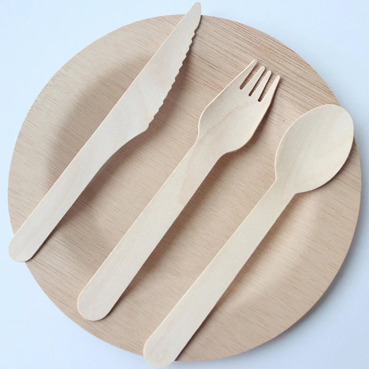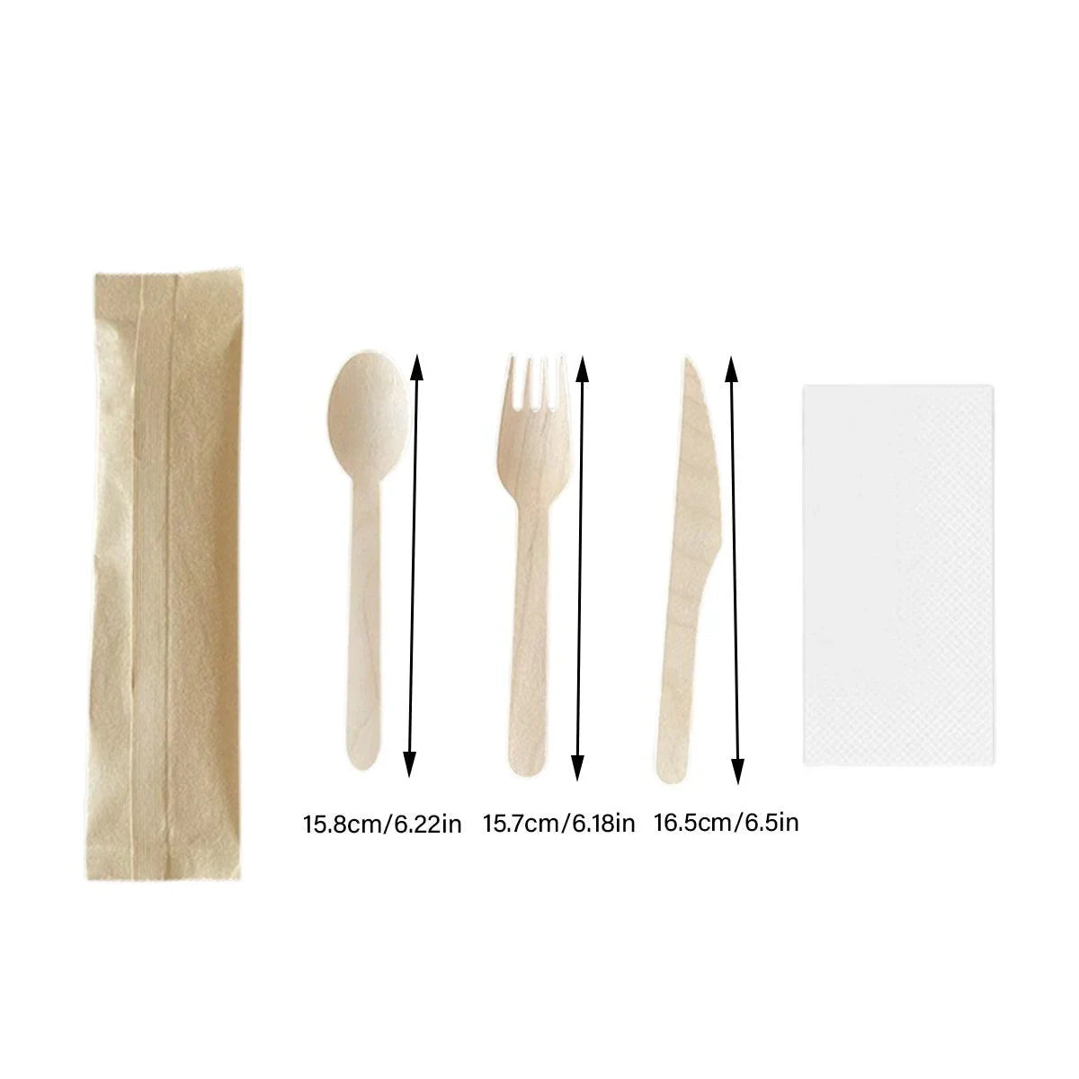 Disposable Tableware Set Wooden Spoons Forks Knives 100Sets