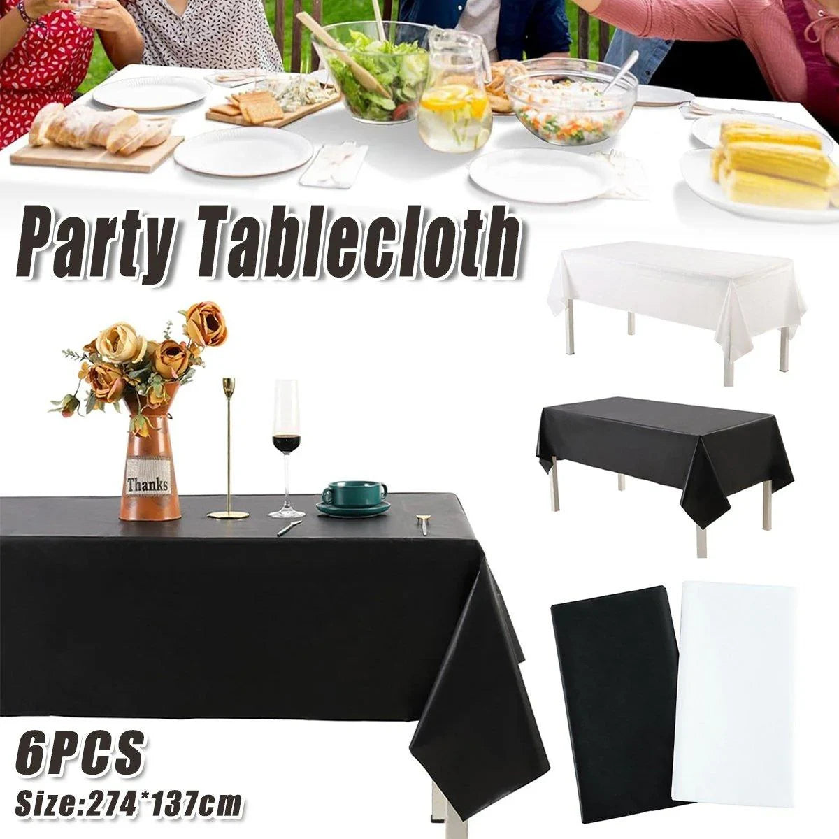 Disposable Thickened Solid Color Party Tablecloth 6PCS