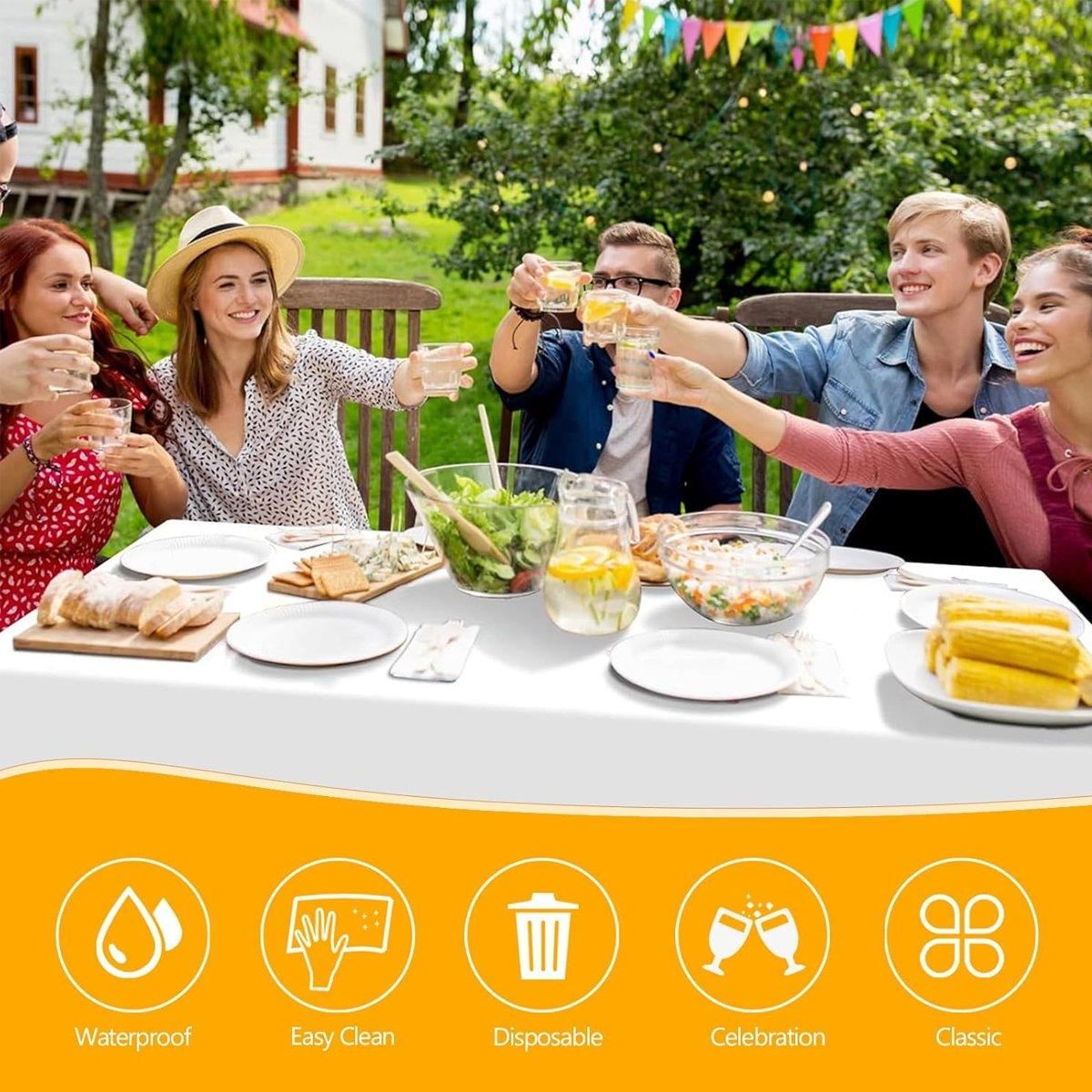 Made for single-use, premium PEVA tablecloth combines style and practicality. Perfect for parties and birthday dinners, this solid, waterproof, and oil-resistant tablecloth keeps your surfaces clean and protected. It's easy to roll out and handle, ensuring hassle-free cleanup after your events.