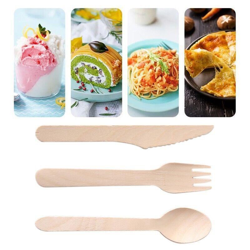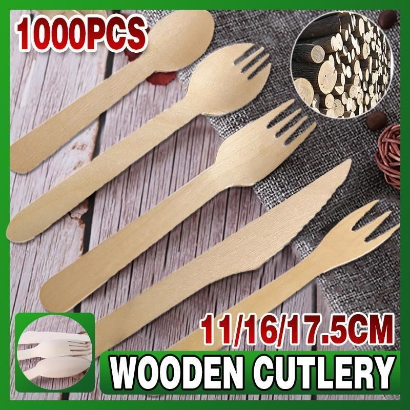 Disposable Wooden Cutlery 1000PCS Spoon Knive Forks Spork