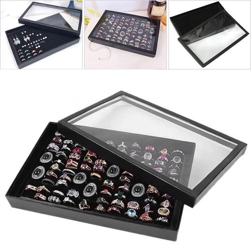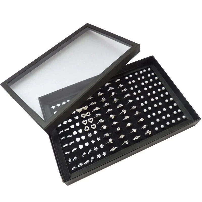 Jewelry Display Box with Clear Lid 1PC 100-Slot Black