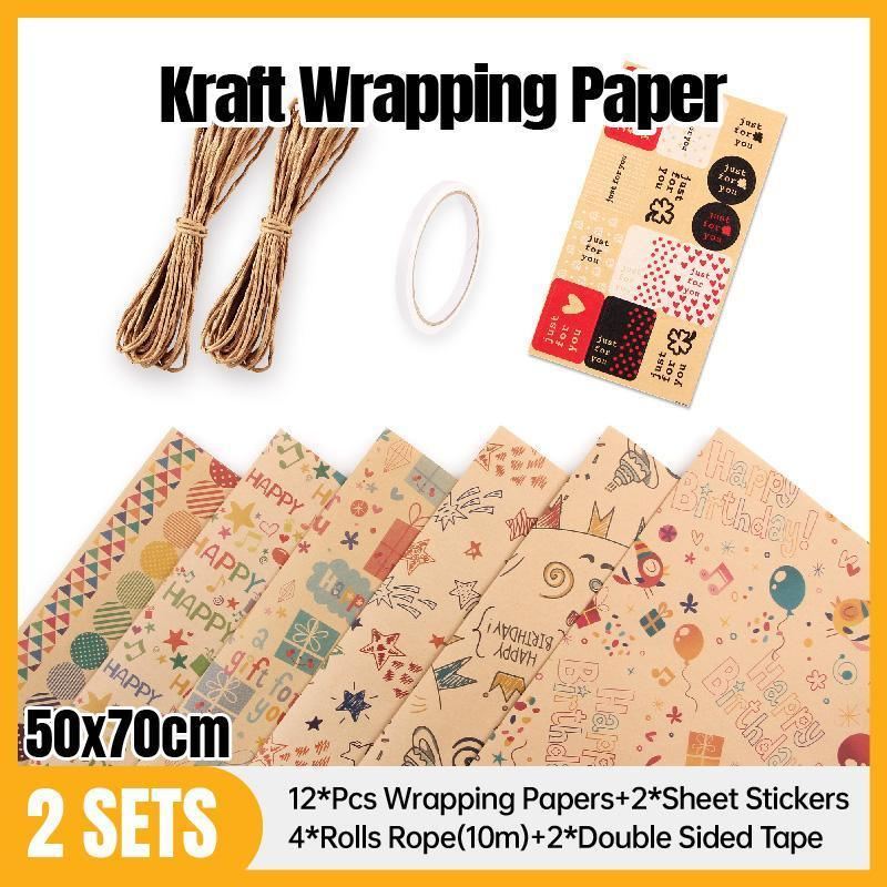 2Sets Kraft Gift Wrapping Paper 12PCS