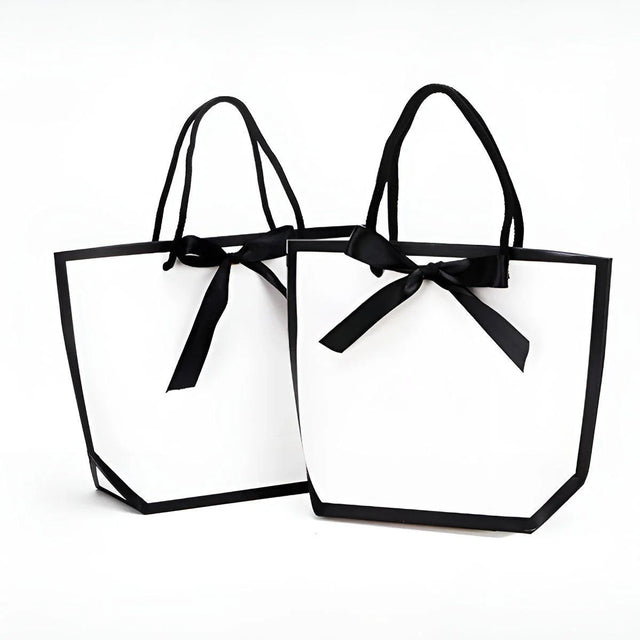 Elevate your gifting experience with these elegant Paper Gift Bags, perfect for all occasions. Designed with a minimalist black and white aesthetic, these bags are both stylish and practical, offering ample space and durability. Whether for special gifts or everyday shopping, these bags are a must-have for any household or business. Made from premium-quality paper, they are strong enough to carry heavy items without tearing or losing shape. The sleek black border and ribbon handle add a touch of sophistication, making them suitable for weddings, birthdays, and other celebrations.
