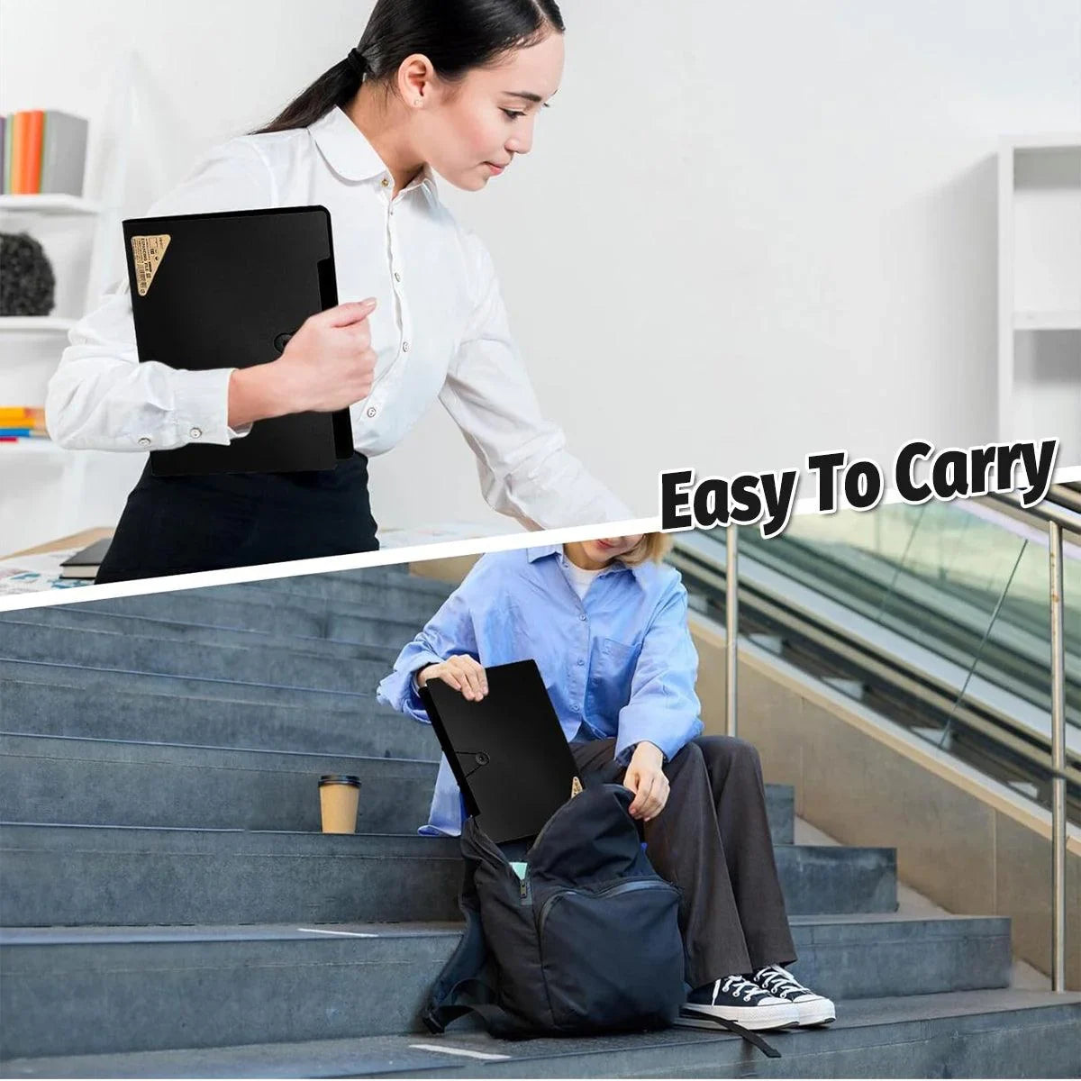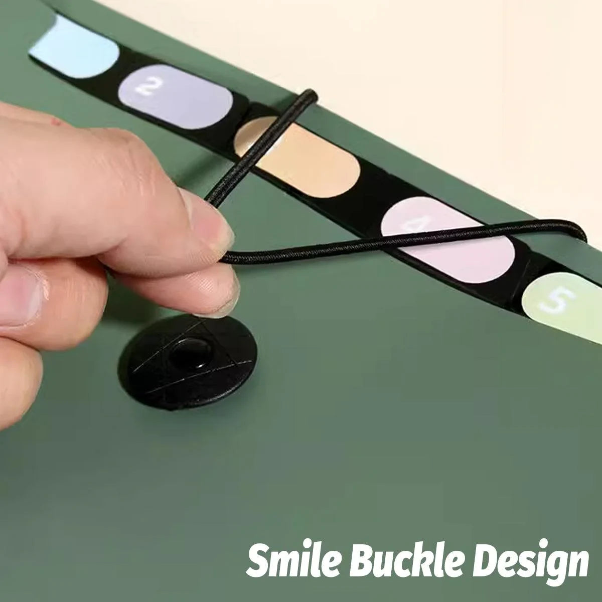 This 8-layer A4 file folder is a practical organiser ideal for documents, test papers, and other office files. Made of thick waterproof material, it ensures long-lasting use and protection from moisture. With colour-coded tabs and elastic cord buckle, it offers efficient categorisation and secure closure. Perfect for school, office, or home use.