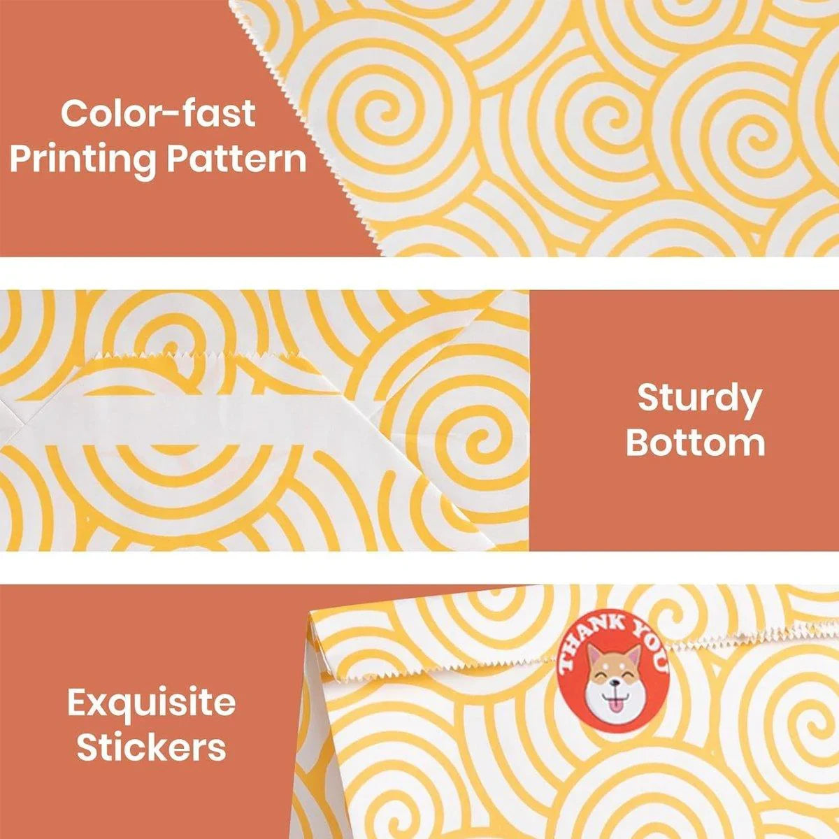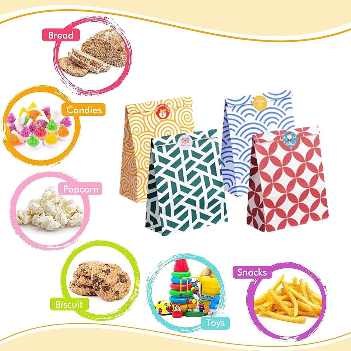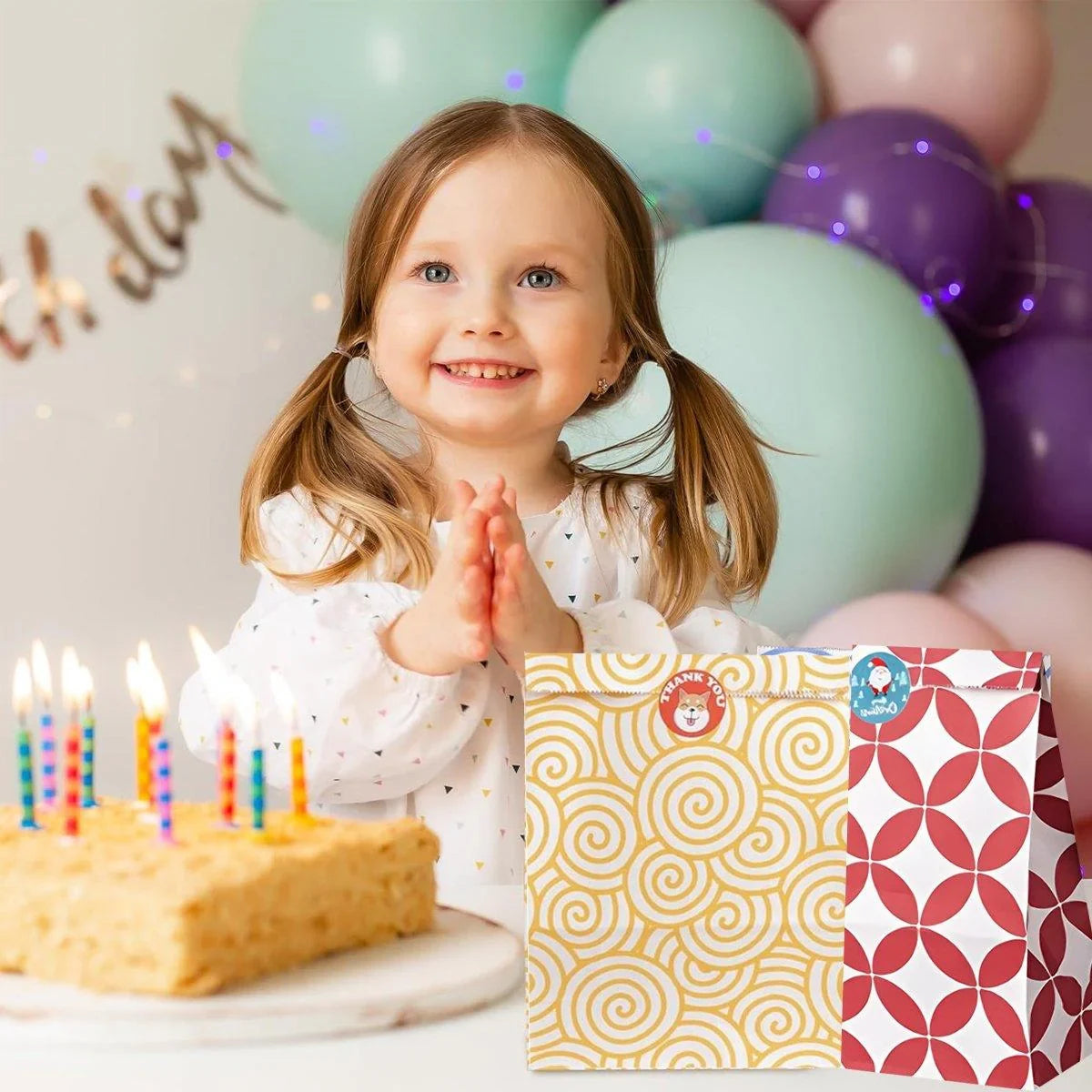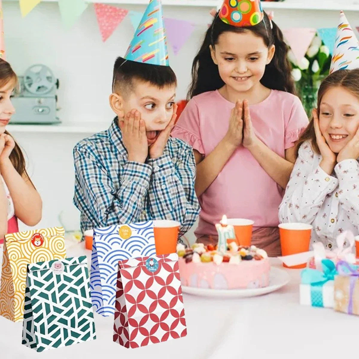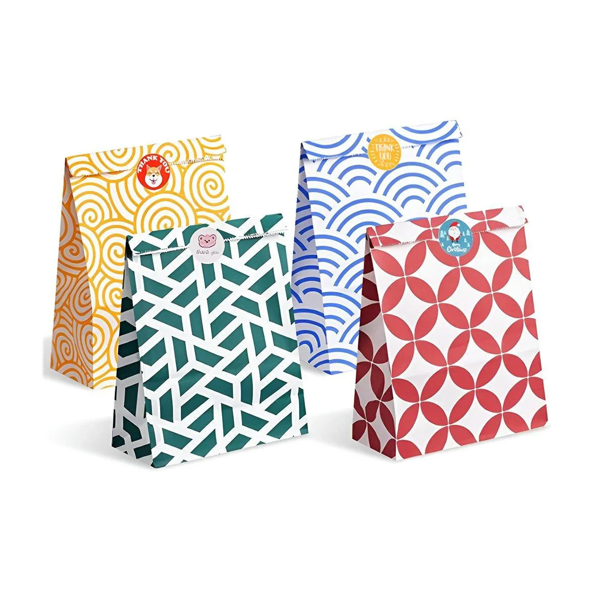 Elevate your celebrations with our Geometric Pattern Party Favor Bags. Crafted from durable white kraft paper, these bags are perfect for packaging cakes, cookies, or gifts at weddings, birthdays, and other events. The vibrant, colour-fast printing adds a festive touch, while the sturdy bottoms and included stickers make them both stylish and practical. With 40 bags and 40 random stickers, they are a versatile and eye-catching choice for any occasion.