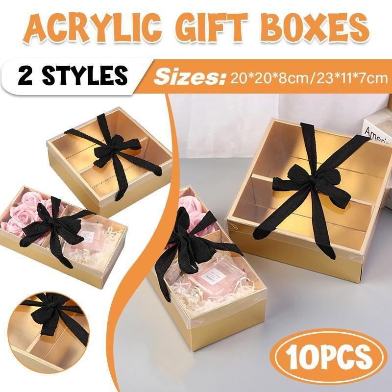 Gift Boxes with Clear Lids 10PCS 2Sizes Golden Cardboard