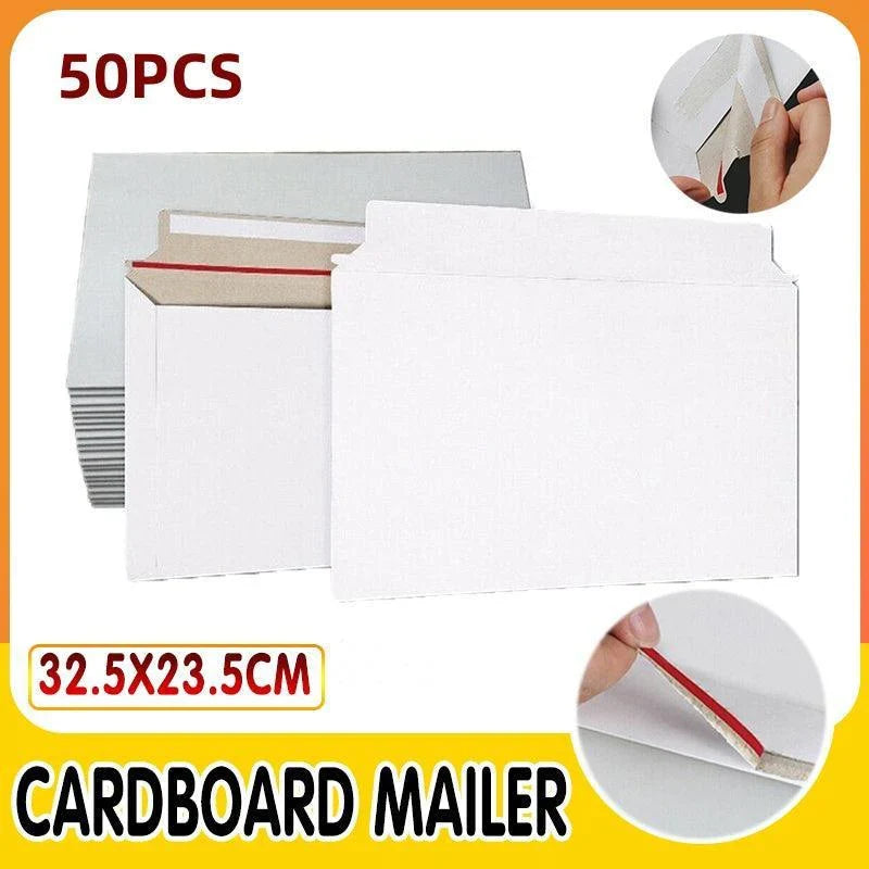 Boost the efficiency and reliability of your mailing operations with our 50PCS Heavy Duty Express Post Envelopes. These envelopes are crafted from high-quality 300gsm white card, ensuring durability and a professional appearance. Featuring a self-seal closure that eliminates the need for additional adhesives, these envelopes are designed to streamline your mailing process. Perfect for businesses and individuals alike, these envelopes are also an eco-friendly choice, made from 100% recycled content.