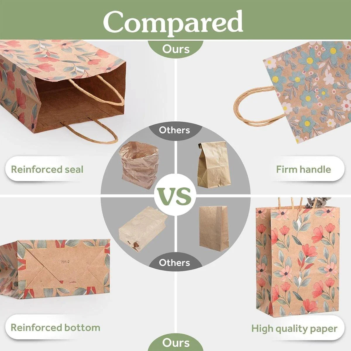 Stylish and practical, the Floral and Leaf Print Kraft Paper Bags are perfect for adding an elegant touch to your parties and events. Crafted from durable kraft paper, these bags feature reinforced handles and solid bottoms to securely hold your items. Whether for parties, shopping, or gifting, these eco-friendly, reusable bags are both beautiful and functional.