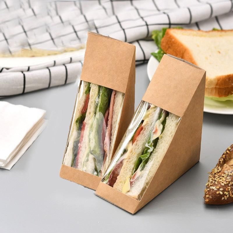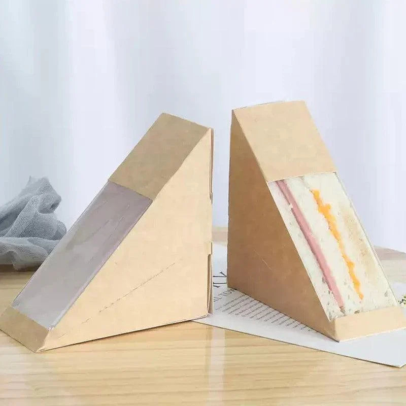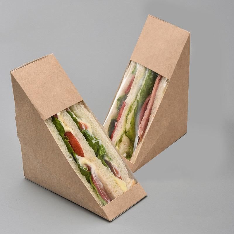 Elevate your takeaway service with our durable Kraft Paper Sandwich Container featuring a clear window. Crafted to perfection for businesses striving to offer customers the ultimate takeaway experience for their delectable sandwiches. These containers are meticulously designed to uphold the freshness and integrity of your sandwiches, be it in a casual café atmosphere or an upscale catering setting.