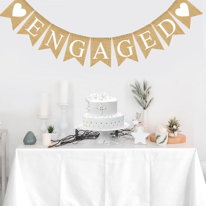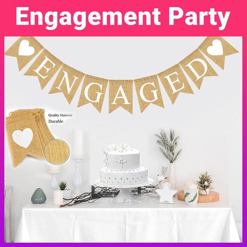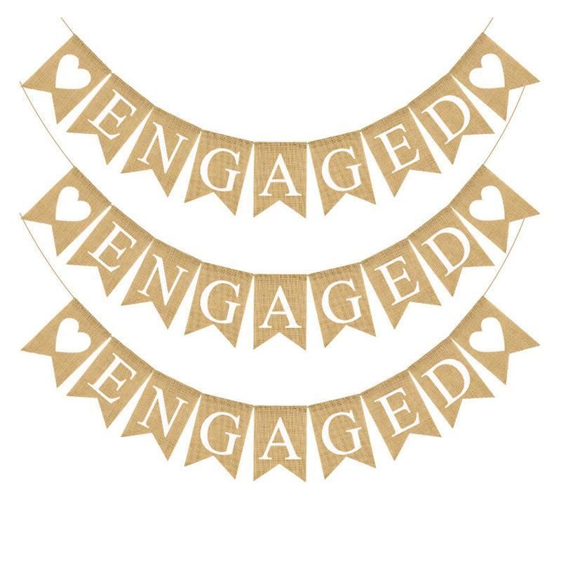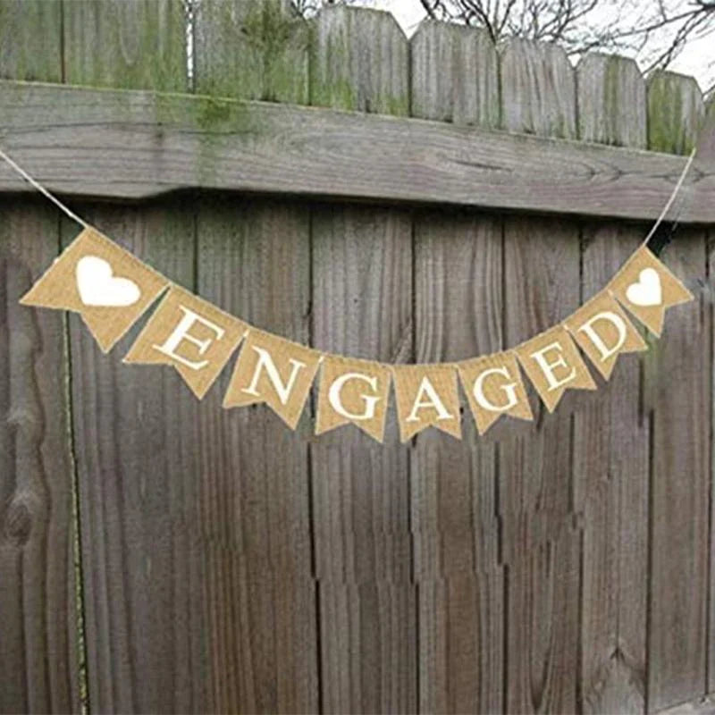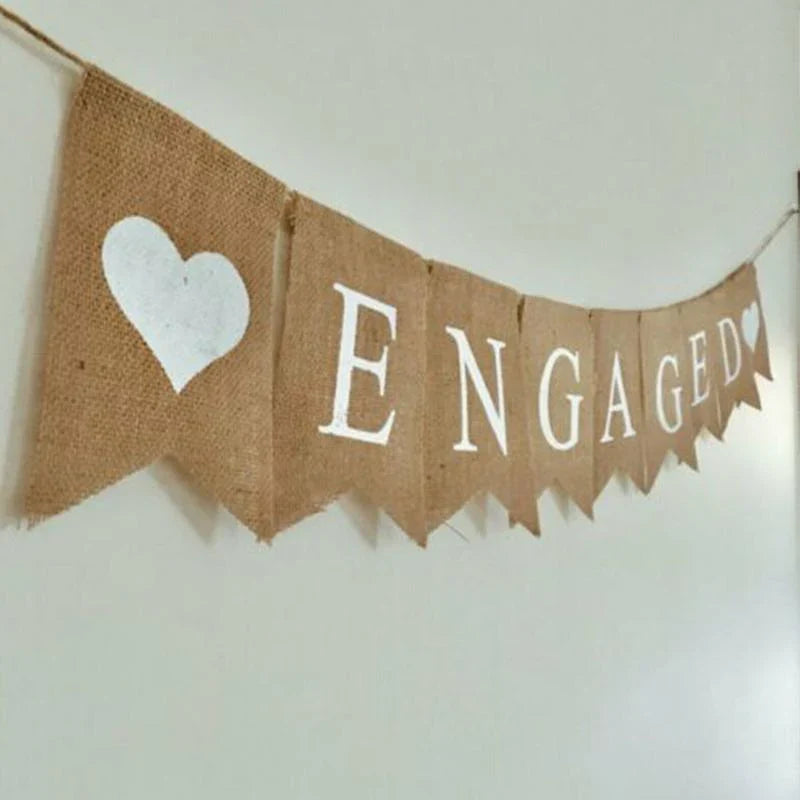 - 1 x Engaged Burlap Banner (9 flag pieces)