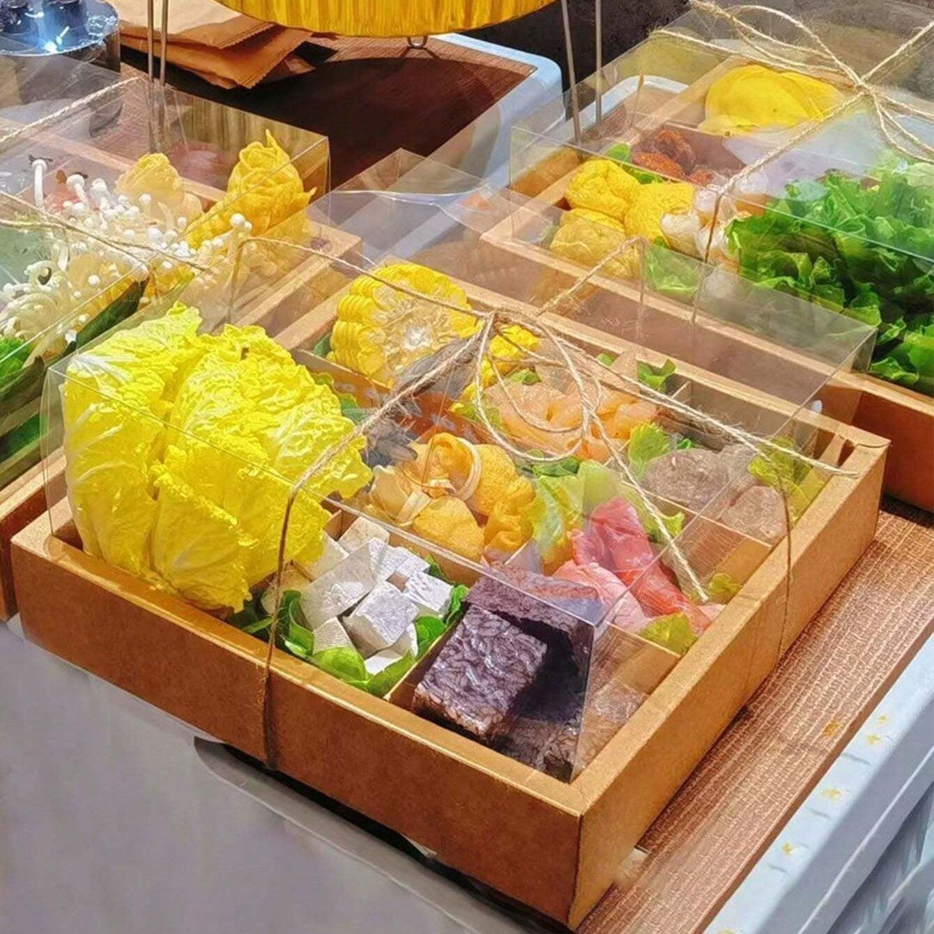 Enhance your bakery's presentation with our Pastry Box with Clear Lid. These versatile boxes are perfect for displaying and storing your favourite pastries, cakes, and other baked goods. Made from eco-friendly kraft paper, these containers are sturdy and durable, ensuring your baked treats stay fresh and secure. The clear lid provides easy visibility of the contents, making them ideal for showcasing your creations. Each box is designed with a compact and elegant appearance, perfect for any bakery or personal use. These Pastry Boxes with Clear Lids offer both functionality and style, making them a must-have for any baking enthusiast.